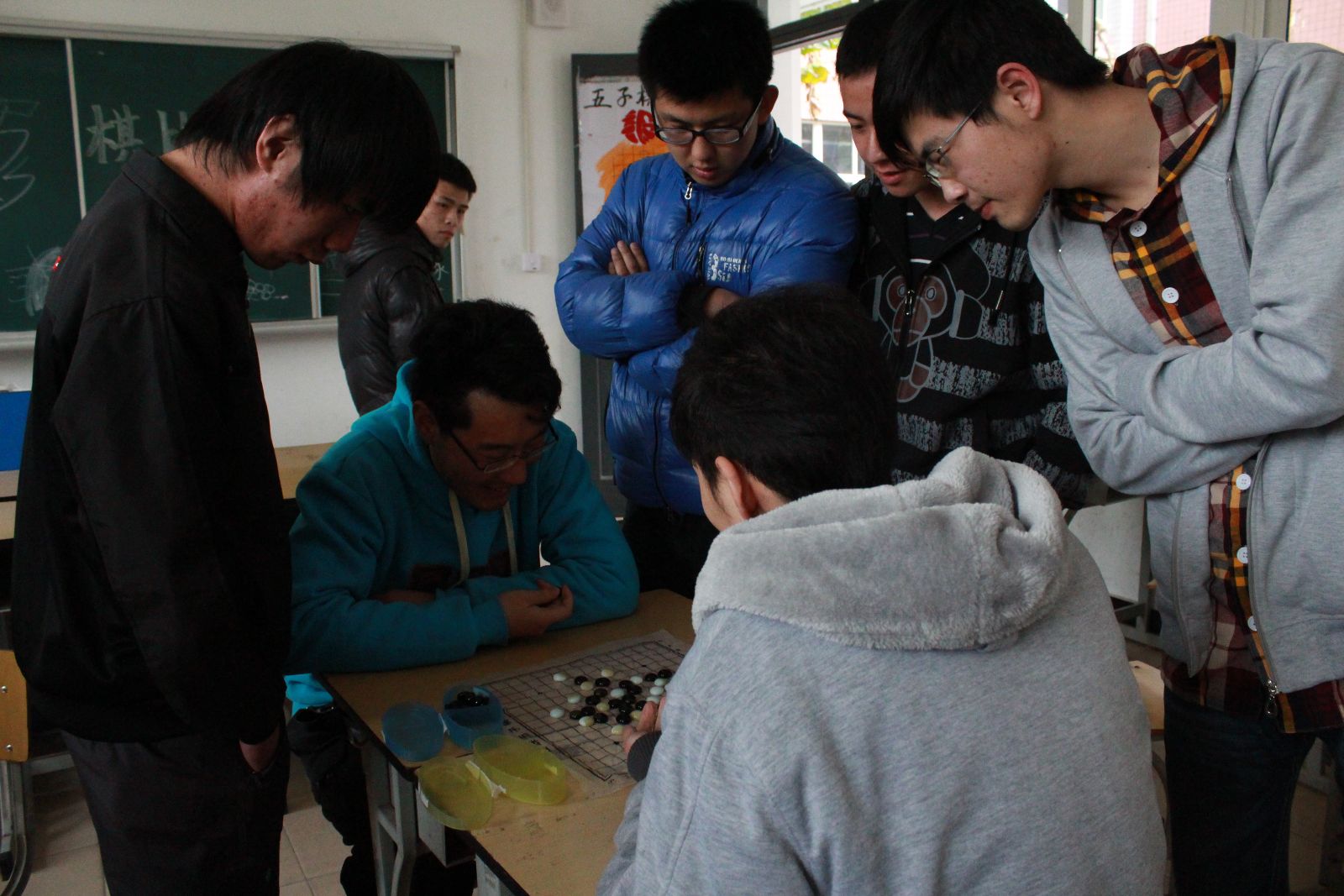 3月27日中午,由信息与计算机系举办的五子棋大赛初赛在一教110室顺利的开始,同学们踊跃参与,全院共36名同学报名,当天很多同学到现场观摩比赛。
