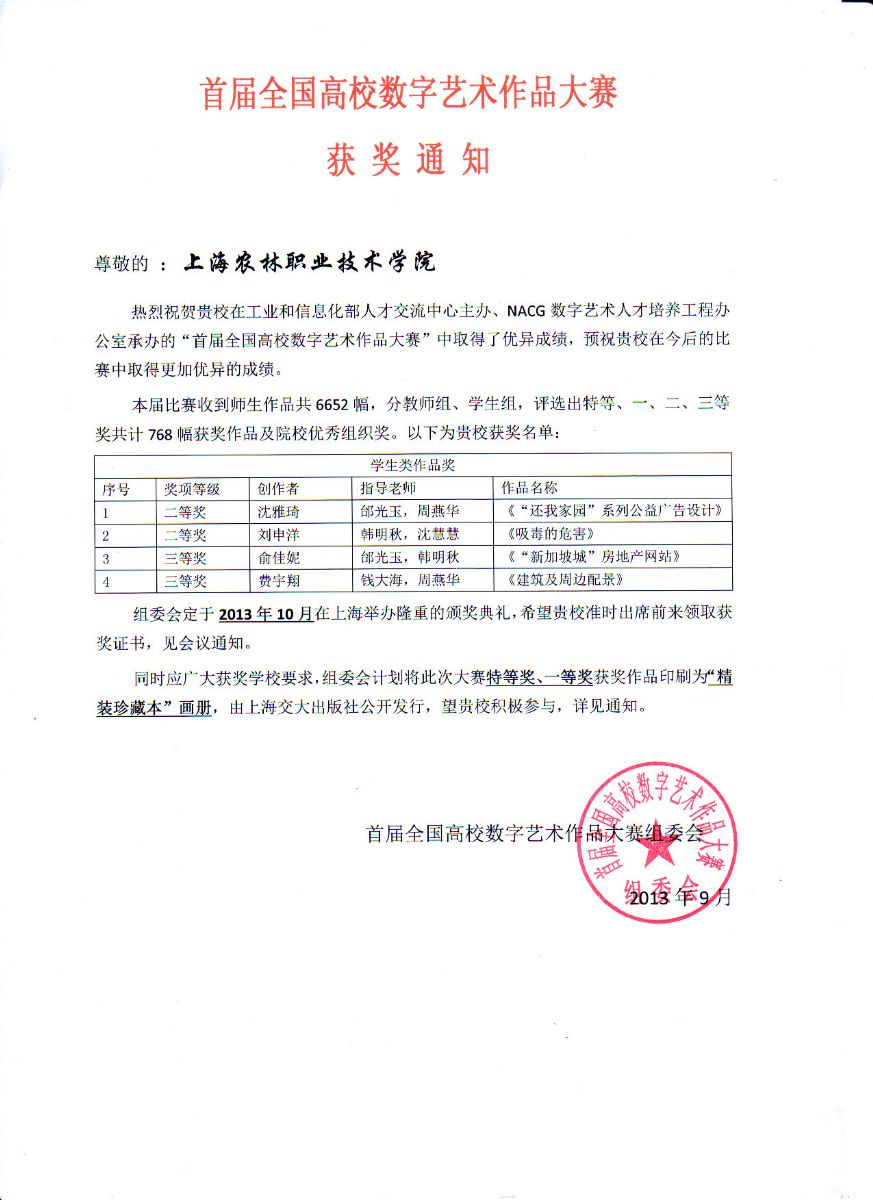 首届全国高校数字艺术作品大赛获奖通知