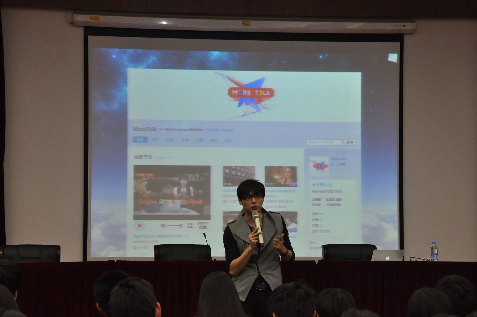 马徐俊是原新东方人气英语老师,人气节目百里挑一5号男嘉宾,MT实用英语创始人,Mars Talk主持人,新媒体人。他在演讲中,从自己及朋友的生活、创业故事为同学们生动的讲述了作为年轻人,他们的寻找梦想故事。他引用奥普拉的话说:“一个人可以清贫、困顿、低微,但是不可以没有梦想,只要梦想存在一天,就可以改变自己的处境。”那么,现在的青年人的梦想是什么?是浑浑噩噩的沉迷游戏,还是奋发图强的去完善自己?身为大学生的我们该如何过好大学生活?这些困惑同学们的问题,在马徐俊老师当天的演讲中找到了答案。在演讲结束之后马徐俊老师与同学们进行了比较深入的交流。