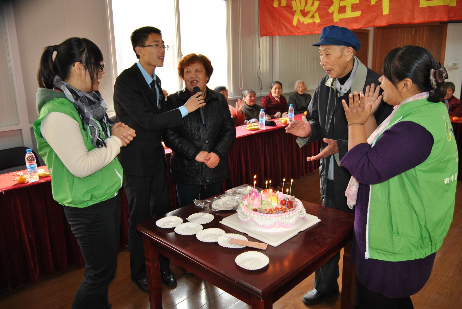 “陈爷爷,今天是您的生日”,“李奶奶,生日快乐”,“祝爷爷奶奶福如东海,寿比南山”“永远开心……”,志愿者们一声声的祝福和问候萦绕在老人们的耳旁。陈爷爷说,平时儿女比较忙,虽然每周末都会过来,但很多时候还是感觉空空的。看到如孙儿的志愿者和同月出生的各位老人们一起过生日弥补了他对子女的思念,她觉得非常开心。一个上午的时间很快的过去,志愿者们从老人们的笑靥中得到了鼓励,感到自己所做的一切都是那样的美好和值得。