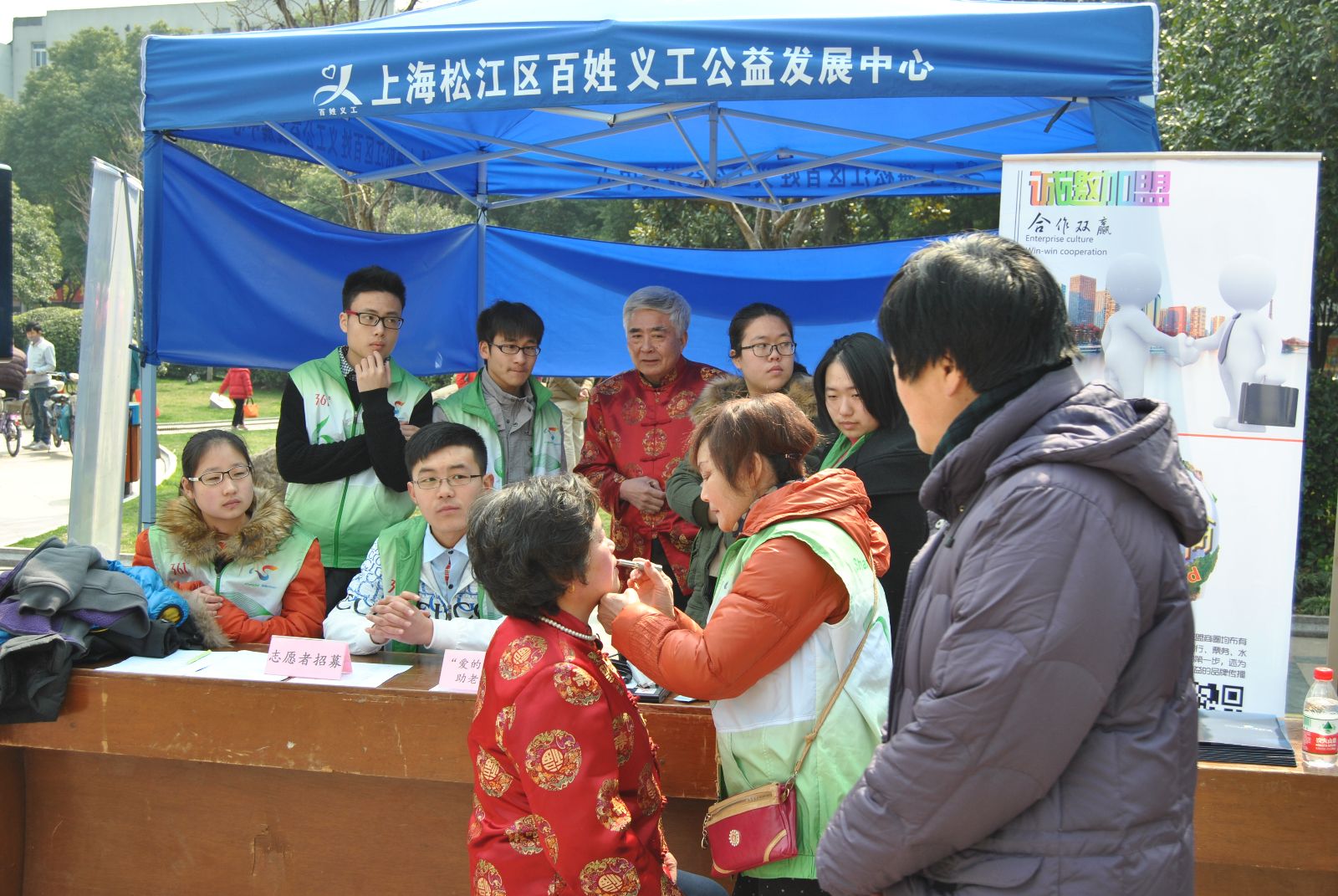 2014年3月2日上午,农信系公益星行动志愿者服务队在岳阳广场开展了包括“爱的传递”助老摄影、招募志愿者和垃圾分类游戏等学雷锋活动。