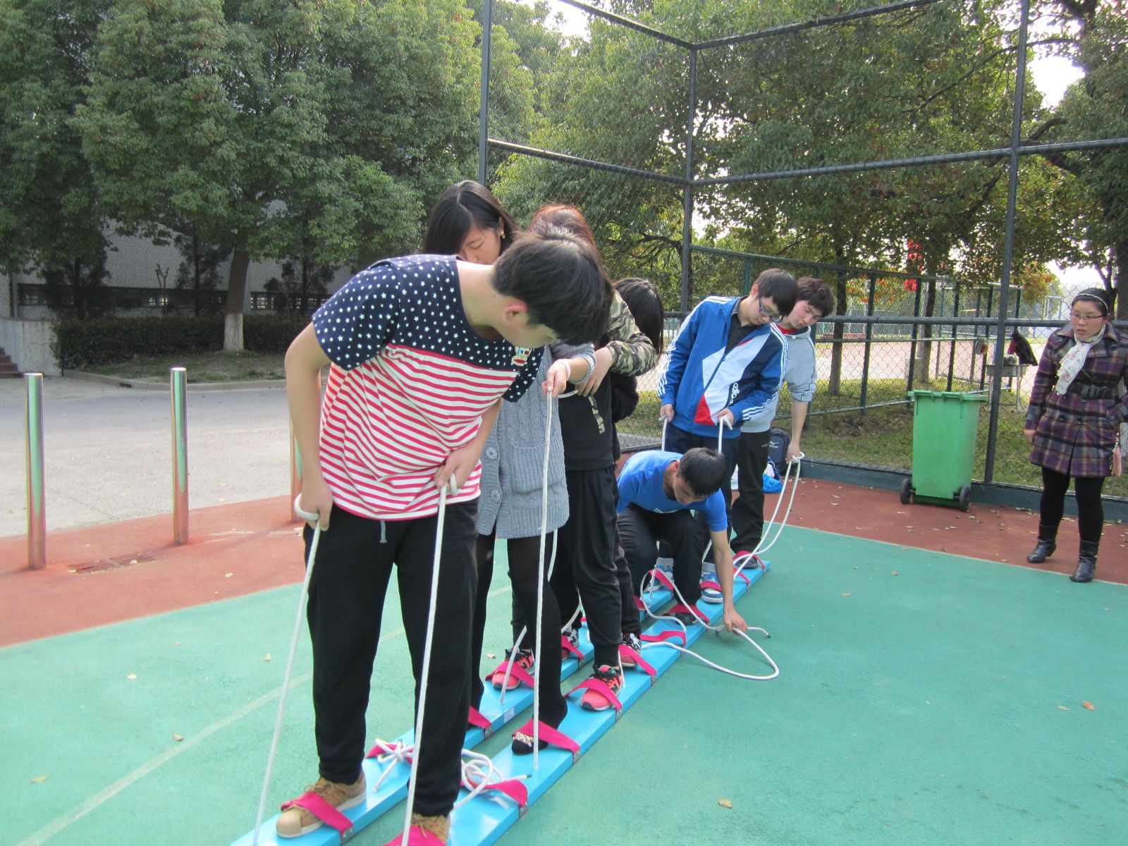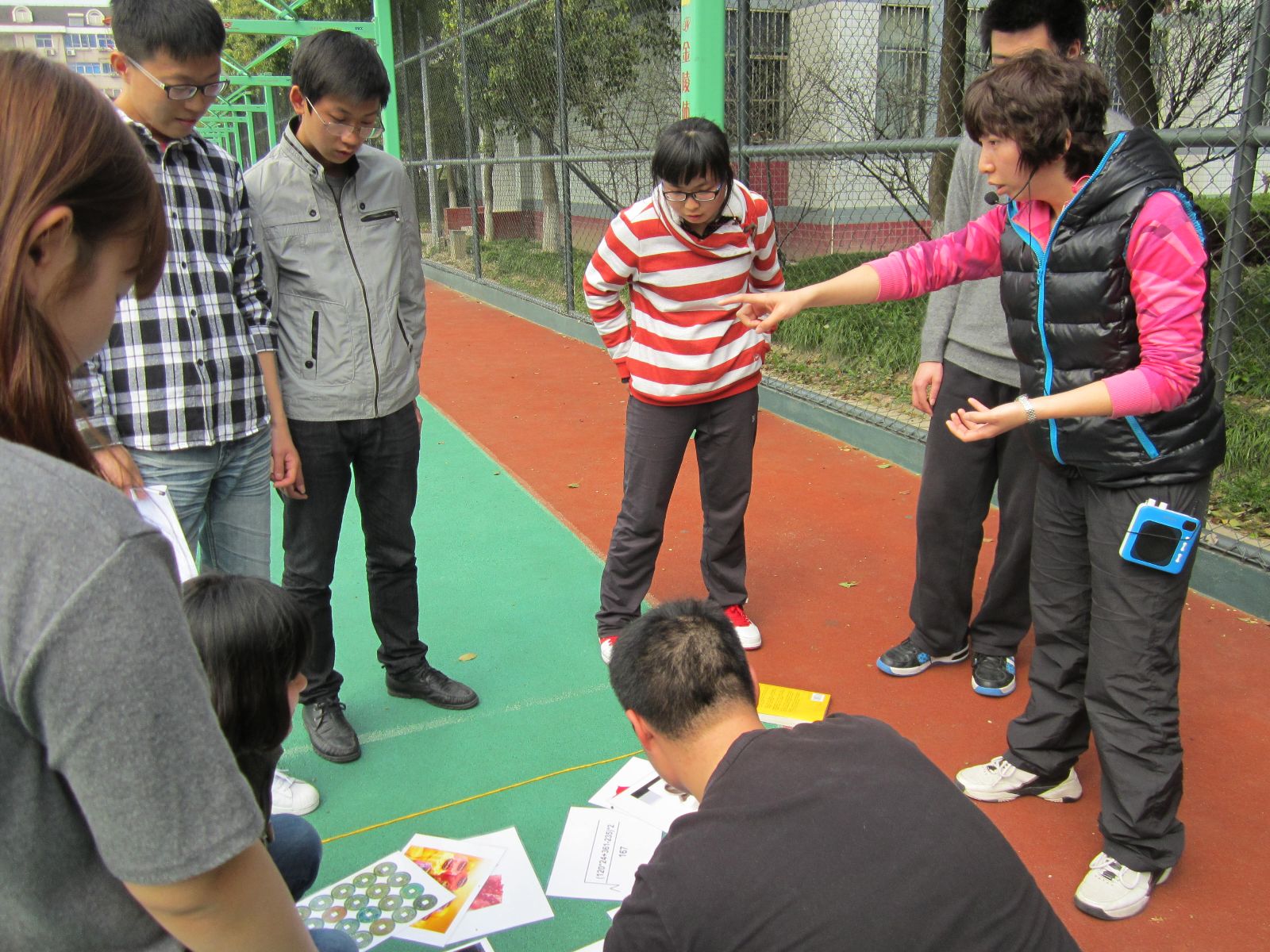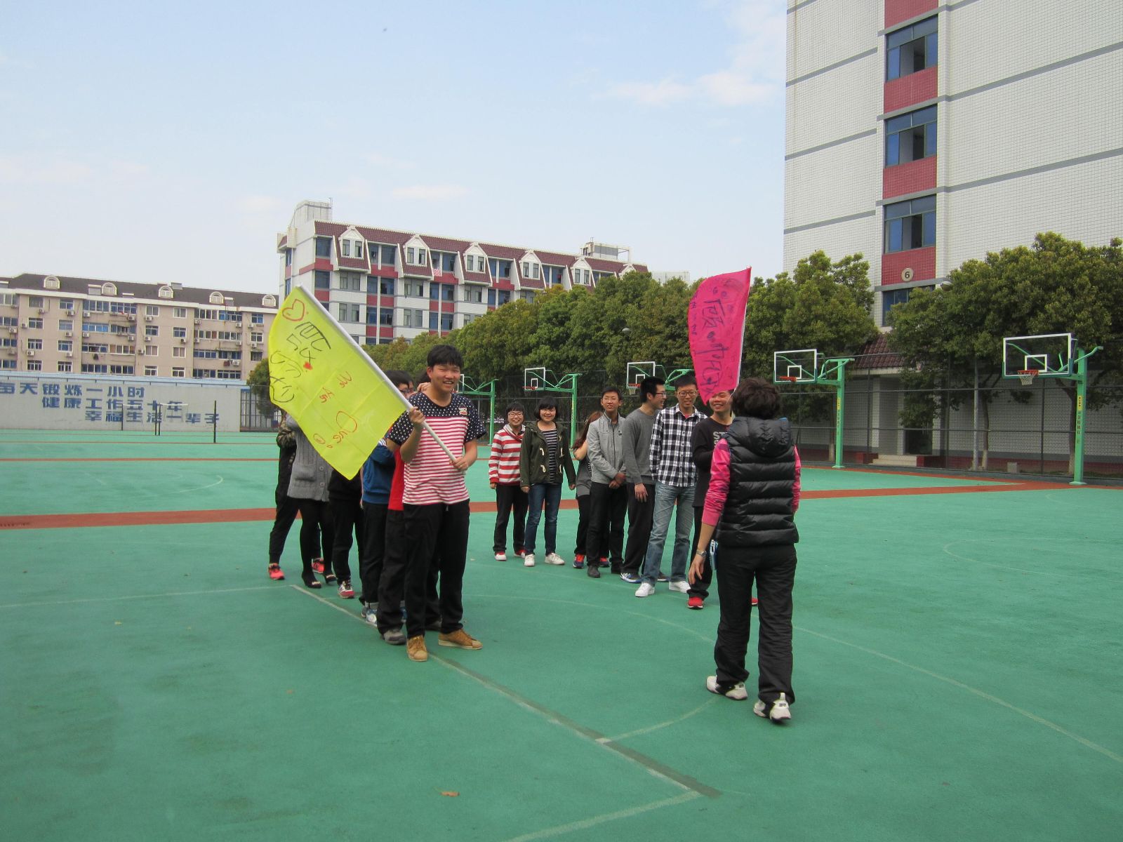 在这里,每一个项目的完成都离不开团队的合作和鼓励。在学生处心理咨询室张欣老师的指导下,首先进行了“热身游戏”,随后,大家分成了两个团队,并各自取了响亮的队名。在各队队长的带领下,团队成员各展才艺,为自己的队伍设计了口号、队旗,并进行了各具特色的团队风貌展示。
