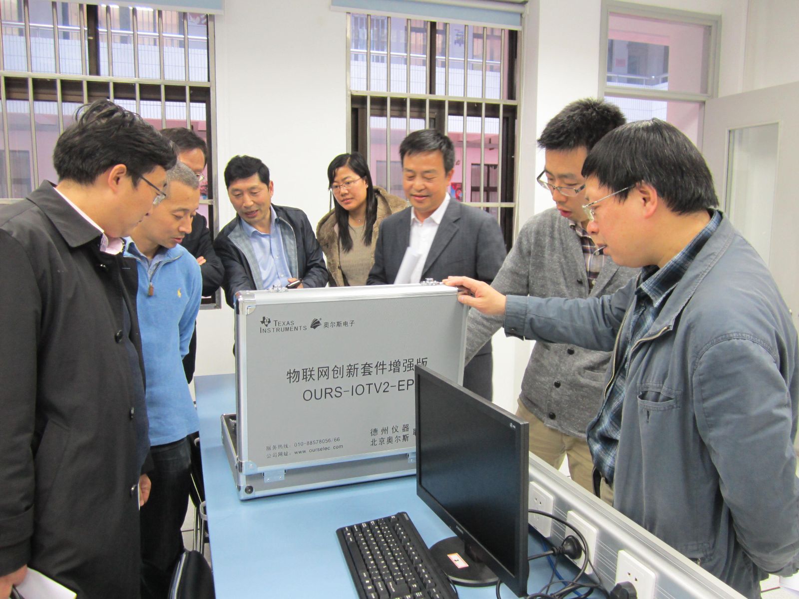 首先,谢锦平副院长结合项目规划图,从农业物联网生产应用展示、农业物联网技术应用示范、农业信息人才教育培训三个角度阐述了整个项目的区域和功能规划。其次,农业物联网实训室负责人耿铭慈老师就实训室内的各类设备逐一进行了介绍,演示了智慧农业大棚沙盘和无线传感网实验箱的应用,并就这些设备在日后的农业物联网教学和培训中的应用做了展望。