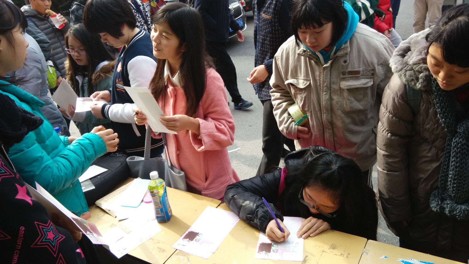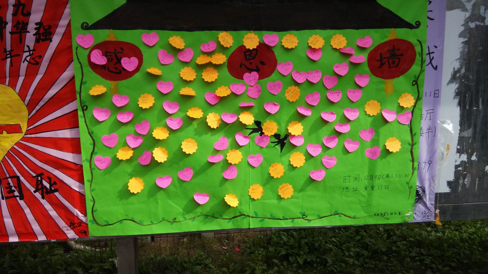 活动在学生食堂门口展开。当天同学们将自己对于心中那个渴望感谢的对象的言语写在便利贴上,贴在了感恩墙上。同时同学将想说的话写在信纸上,参加爱心邮递活动,用传统的信件方式邮寄给想感恩的人,有的同学寄给了家人、有的寄给了高中同学、有的同学寄给了老师。