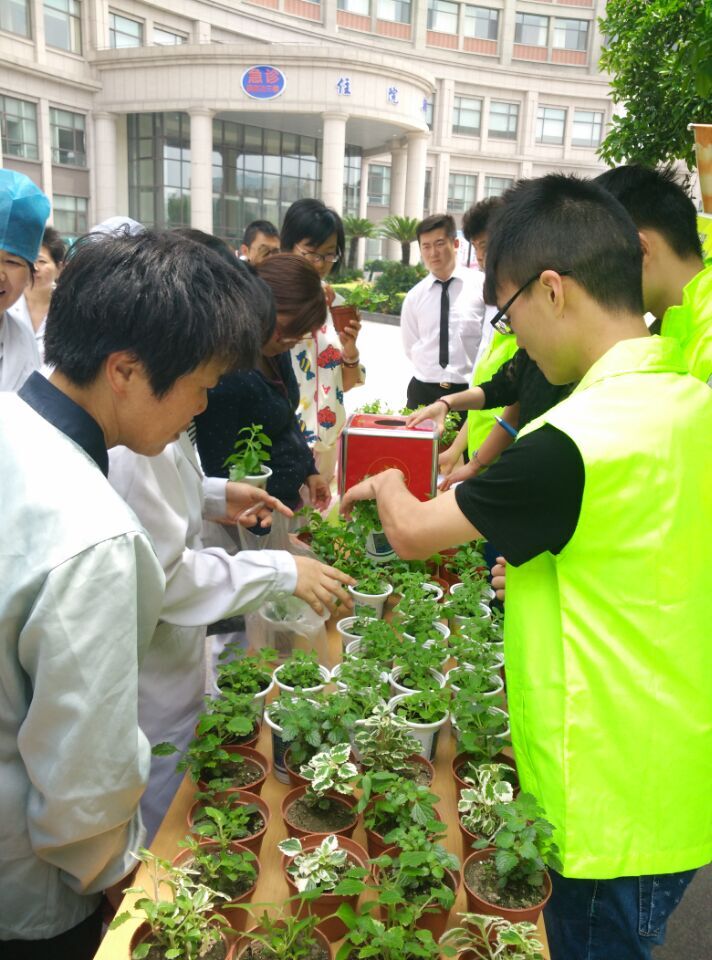 5月21日,农业信息工程系的10名志愿者们准时在校门口集合,有序的分为两个小队,分别前往上海市松江区第一人民医院和上海市松江区妇保医院开展“点良绿色”活动。