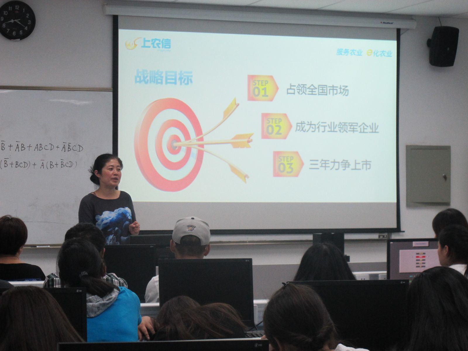 会上,金阳感谢学院输送和培养农业信息化人才,她向与会同学介绍农信公司目前在农业物联网、食品追踪、农易云方向的市场业务,指出农信公司3年内香港上市的大好发展形势,并通过播放企业的宣传片向同学们传达企业文化。最后对同学们未来的就业岗位和职业发展做了详细的说明。随后,辛雅芬向同学们介绍了在“双主体”培养模式的基础上建立起来的现代学徒制试点班的内涵和作用,介绍了学院现代学徒制的教学管理制度和保障体系等。她号召同学们抓住本次试点班的机会,通过现代学徒制试点班将使同学们能够适应农业物联网专业的岗位要求,并成为一名农信公司合格的员工。孙修东详细解读了现代学徒制试点班教育培养协议的内容。宣讲会后众多同学纷纷咨询和报名。