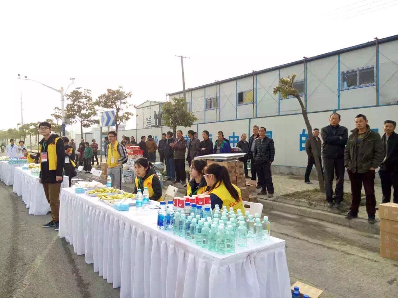 我系参与的志愿者们负责在马拉松赛道上的18、19公里赛道的补给点,主要为参赛选手提供水和食物,让选手们在20公里冲刺处更有力量奔跑。活动现场的志愿者们积极做好本职工作,并且在供水之余,化身为热情四射的啦啦队,一声声大喊的加油,一次次兴奋的击掌,感染着一位位疲惫的冲刺选手。一位满头花发的大爷带着萌萌的兔耳朵,路过18公里补给点时,拿出手机和我们合了照,有一位同学好奇的询问大爷的年龄,大爷笑眯眯的告诉我们说他永远十八岁,爽朗的笑声回荡在赛道上。