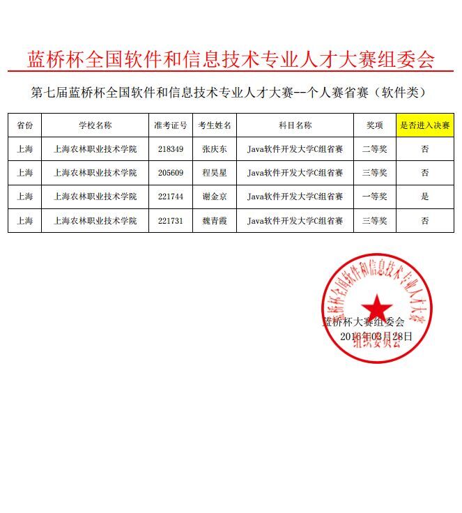 3月下旬,第七届“蓝桥杯”全国软件和信息技术专业人才大赛个人赛省赛举办,在农业信息工程系孙修东老师、李嘉老师的指导下,参赛的5名同学均传来可喜成绩。