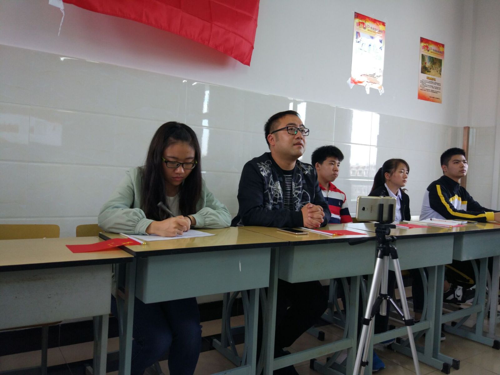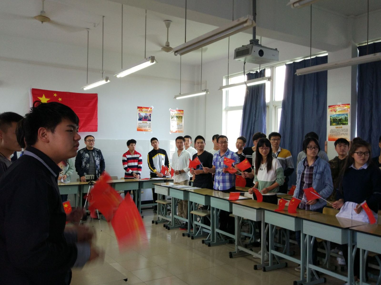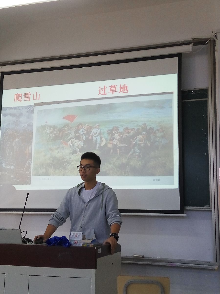 恰同学少年,风华正茂,挥斥方遒,指点青春。活动中,设施161班的学生们用饱含激情、抑扬顿挫的语调,声情并茂地讲述了红军长征过程中一幕幕感人故事;软件162班的诗朗诵《长征》,仿佛又把大家引领到了红军长征时的艰难岁月,在朗朗诵读声中感受先烈们的爱国情和坚韧不拔的精神;网络162的互动抢答部分气氛活跃,在新学期伊始拉近了同学们之间的距离;网络161的学生们更是在视频播放和PPT讲解中了解到不少关于长征的知识;软件161班一曲《没有共产党就没有新中国》更是唤起了学生们心中浓浓的爱国情,自豪感油然而生。