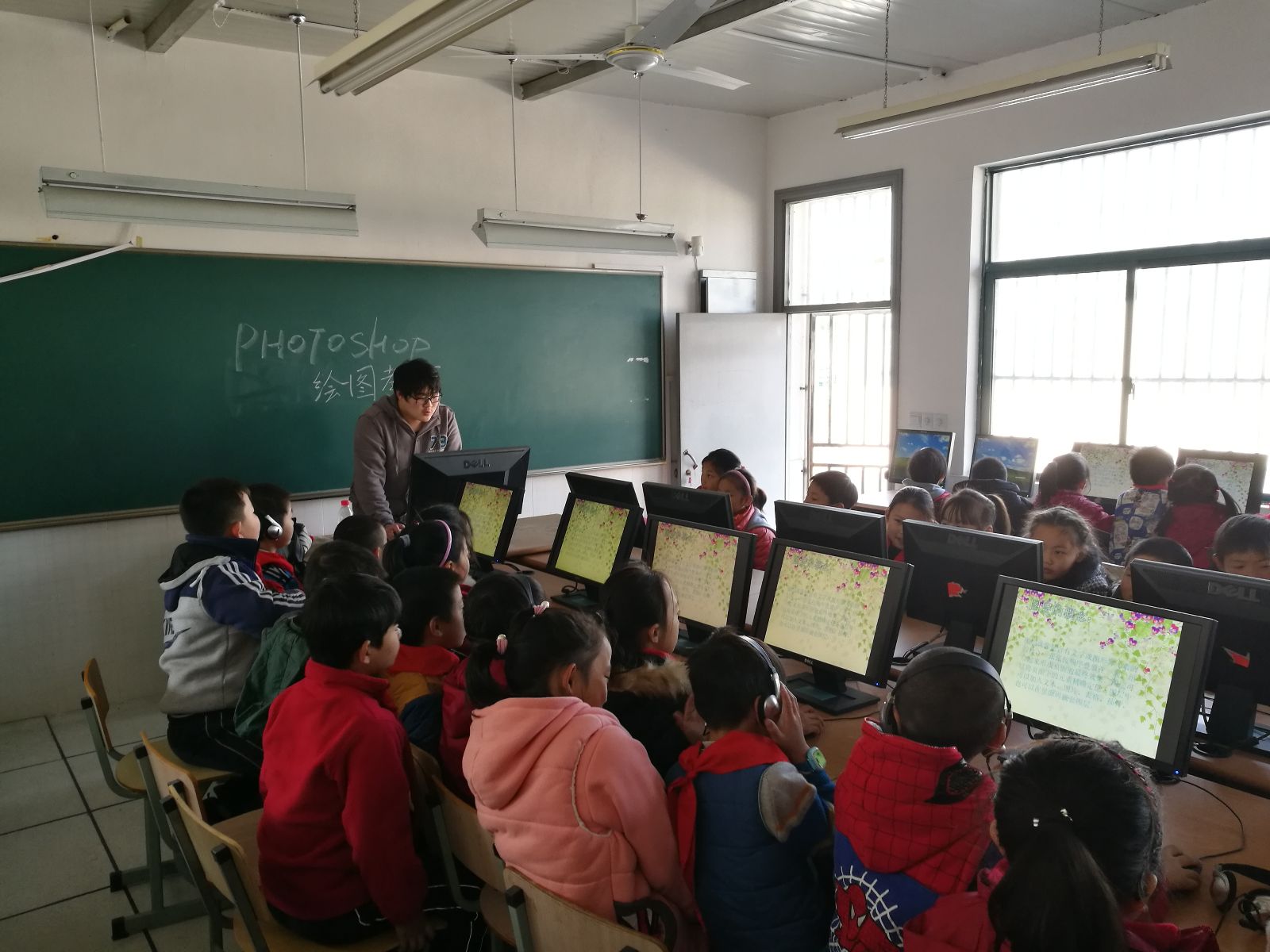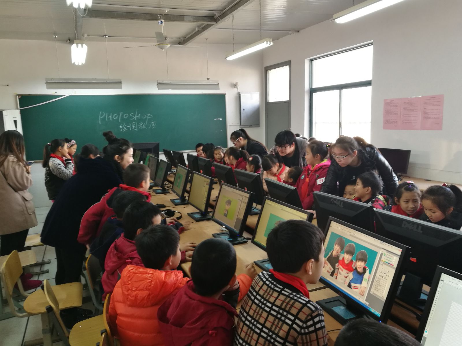 12月15日中午11时,我系8名志愿者前往松江区花桥村小学,为花桥小朋友教授photoshop绘图简易操作及书签的制作。