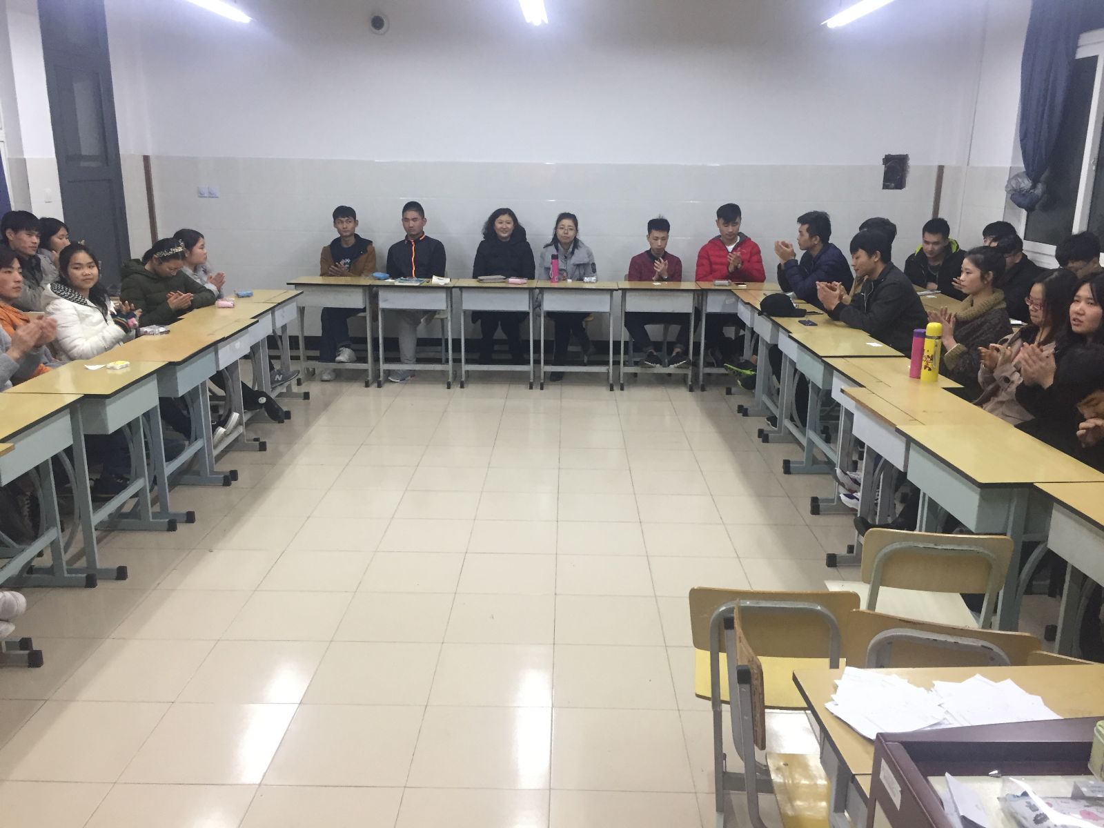 2016年12月22日晚18点,农信系迎双节活动于一教511教室热烈开展。出席本次迎双节活动的有袁少英老师、赵文旻老师、张春燕老师、李苏琳老师以及农业信息工程系的50多名困难学生。师生们在热闹、愉悦的氛围中度过了精彩的一晚。