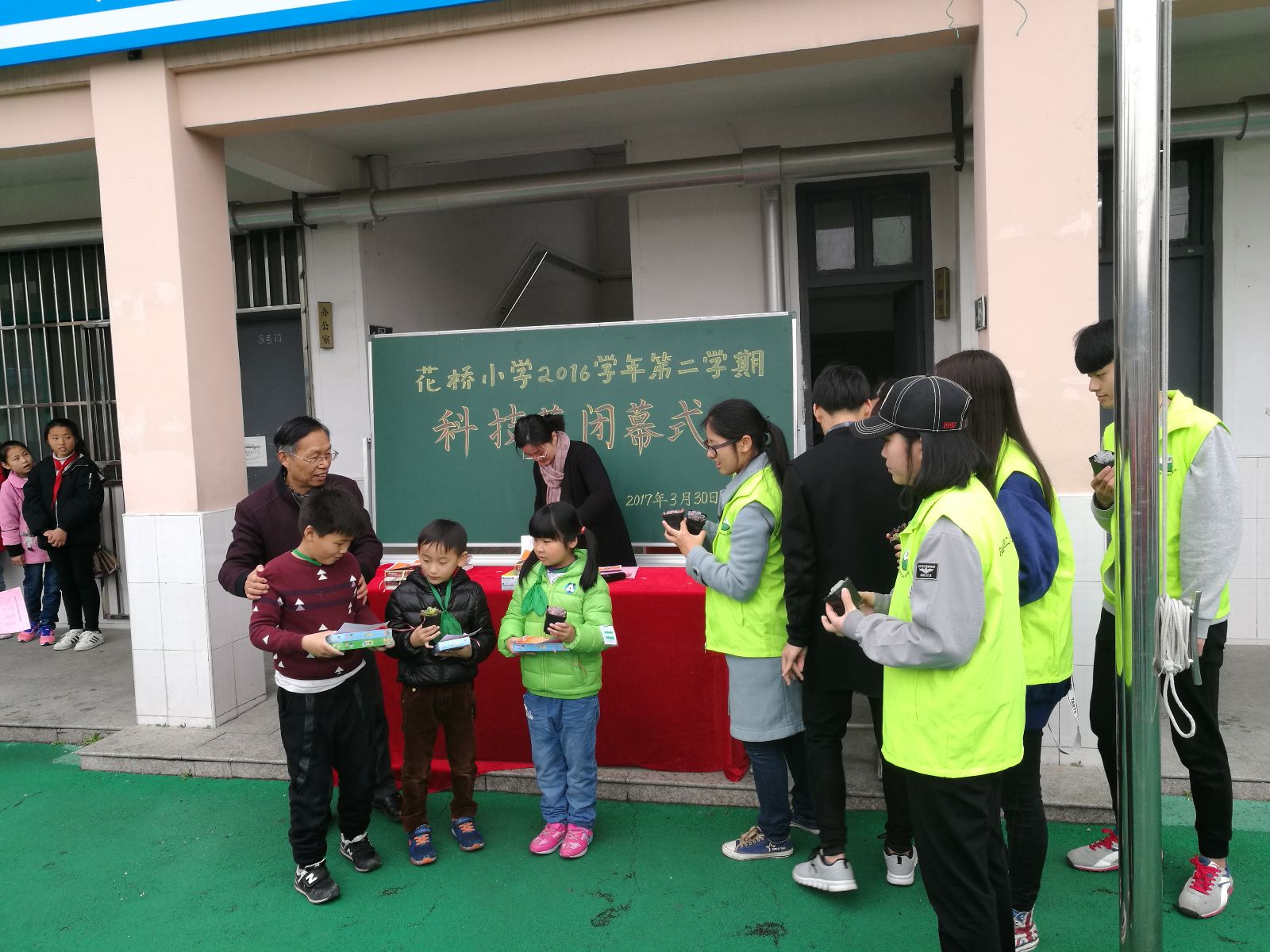 3月30日上午10点,农业信息工程系9名志愿者抵达松江区花桥村小学,为花桥小学举办的科技节活动进行科技讲座并为参与科技竞赛获奖的小朋友颁奖。