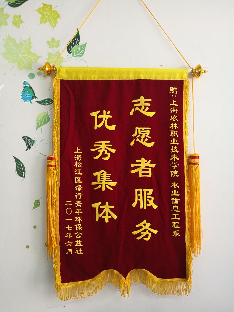 7月3日,为了表达对农信系志愿者一年以来在公益志愿活动上的卓越贡献的认可与表彰,上海松江区绿行青年环保公益社为农信系送来“志愿者服务,优秀集体”锦旗。