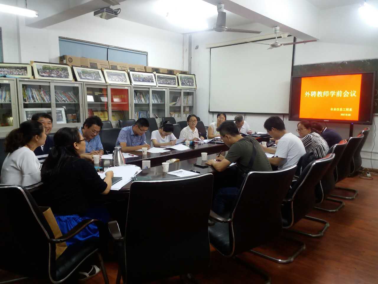 9月10日下午13:00,农信系2017-2018学年第一学期外聘教师开学前工作会议在农信楼201会议室召开,农信系教师及农信系外聘教师共19人参加了座谈会。会议由周燕华主持。