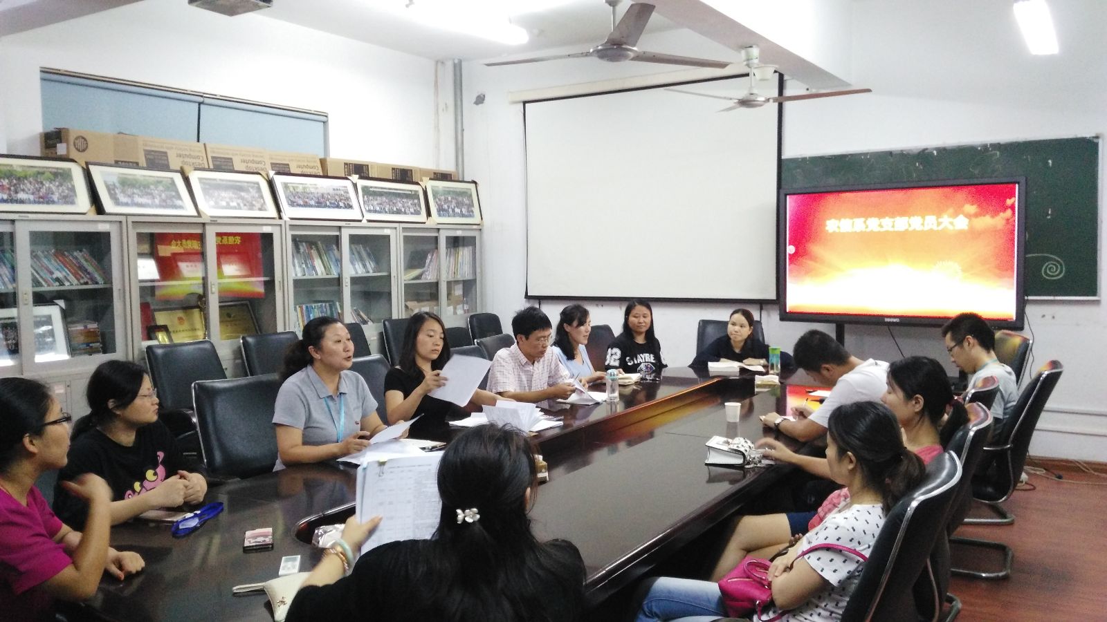 9月15日下午,农业信息工程系党支部在农信楼会议室召开了党员大会,全体党员出席会议,系党支部书记袁少英主持。