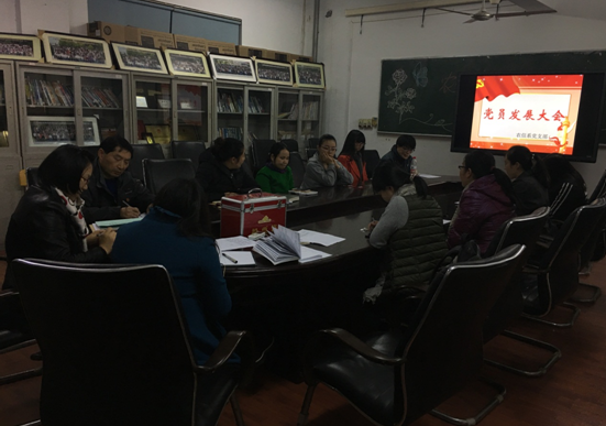 2017年11月27日,农业信息工程系党支部召开支部党员发展大会,讨论高明豪、郭妙晨两位入党积极分子发展为预备党员的问题。本次大会应到且有表决权的正式党员16人,实到且有表决权的正式党员13人。大会由党支部书记袁少英主持。