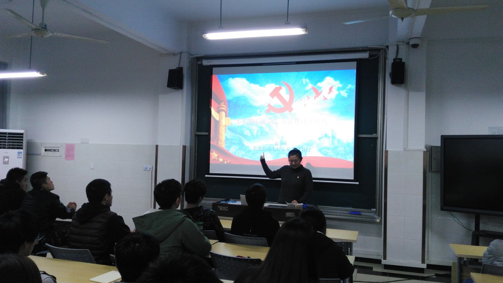 12月14日,农业信息工程系党支部书记袁少英老师为2017级50余名递交入党申请书的学生上党课,主题为《党旗指引我成长—入党基本知识暨党的十九大精神宣讲》。