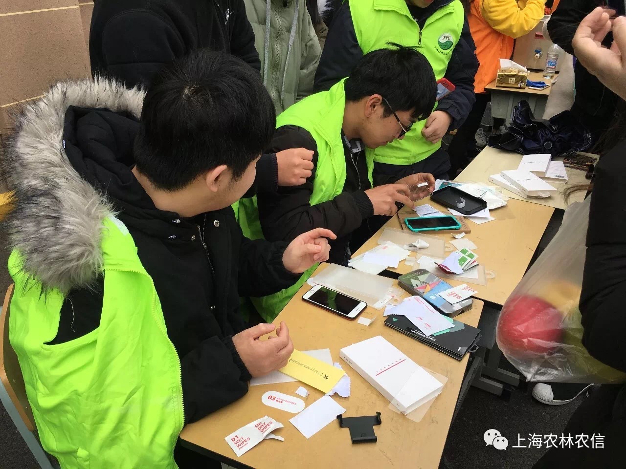 在学生事务楼广场,各系组织了一系列“学雷锋”活动。农信系维修社提供的手机贴膜志愿服务。现场气氛热闹,6余名志愿者为近100余人提供了手机手机贴膜的志愿服务,使广大学生在志愿服务的实践中传承雷锋精神,将学雷锋活动落到实处。