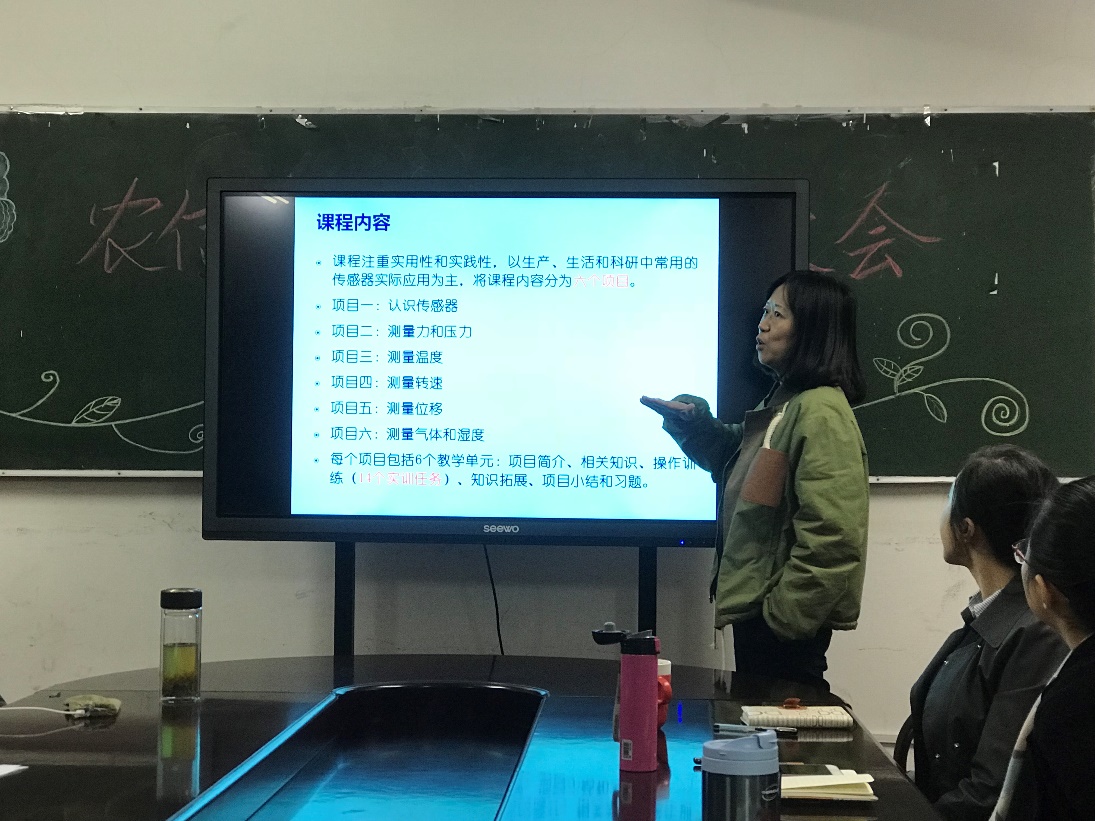 说课内容围绕课程目标、课程定位、课程在专业体系中的位置、课程内容、课程考核方式、课程教材、课程已开发资源(课程平台、微课或其他)(可选)、课程上课环境(可选)、课程创新点(可选)等多方面展开说课;说课时间:10-15分钟。每位老师选择1~2门所教课程,结合以上方面,进行课程说课。本次演讲过程丰富多彩,亮点各异。如谭春茂老师说《Linux操作系统》课程,多年丰富的教学经验和对人才培养方案的熟悉程度,在课程定位和课程在专业中的位置上进行系统化分明的讲解,并结合课程的实践性及学生特征,在把握内容实际化基础上,使用虚拟机环境,保证学生系统性的掌握操作重点难点。聂爱丽老师的《无线传感及检测技术》,结合该门课程的多次教学经验,形象生动的阐述了力、温度、转速、位移、湿度等传感器模块的说课内容,项目化教学使教学变得更加系统、清晰、简单。
