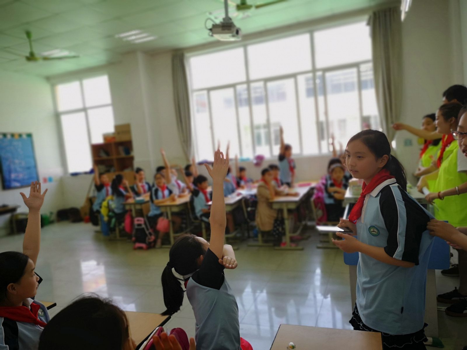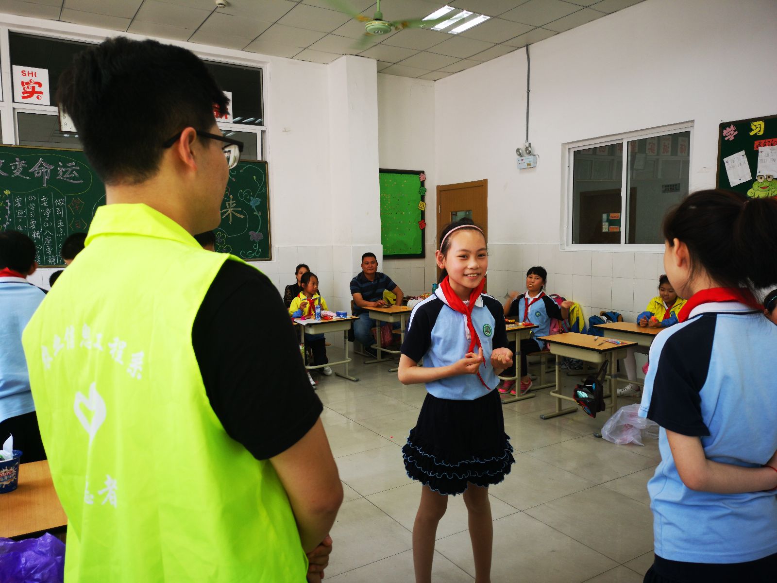 农信系的志愿者们组织花桥小学的小同学们表演了拉丁舞、琵琶等形式多样、内容丰富的节目;节目展示出多姿多彩的校园生活和少儿们昂扬向上的精神风貌。在随后志愿者们准备好的游戏中,花桥小学的学生们积极参与、团结奋进;在物联网知识竞赛环节,同学们积极踊跃参与,更是把活动气氛推向高潮,最后志愿者们给答对问题同学颁发奖品,以鼓励他们好好学习,天天向上。