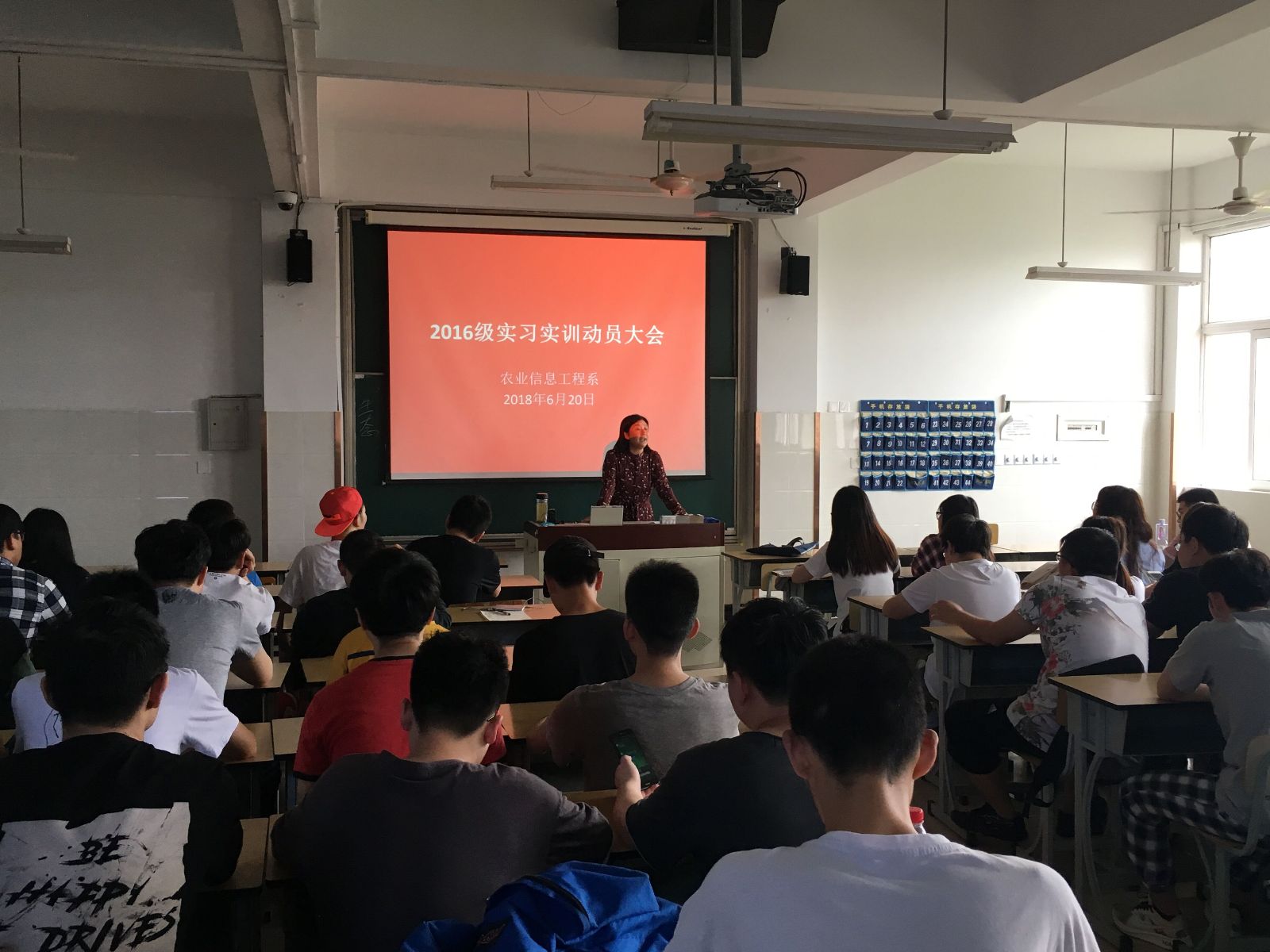 6月20日,农信系按照专业分三批次召开2016届学生实习实训动员大会,农业信息工程系党支部书记袁少英老师、16级学生各班的部分任课老师、辅导员及207名2016届学生参加了动员次大会。