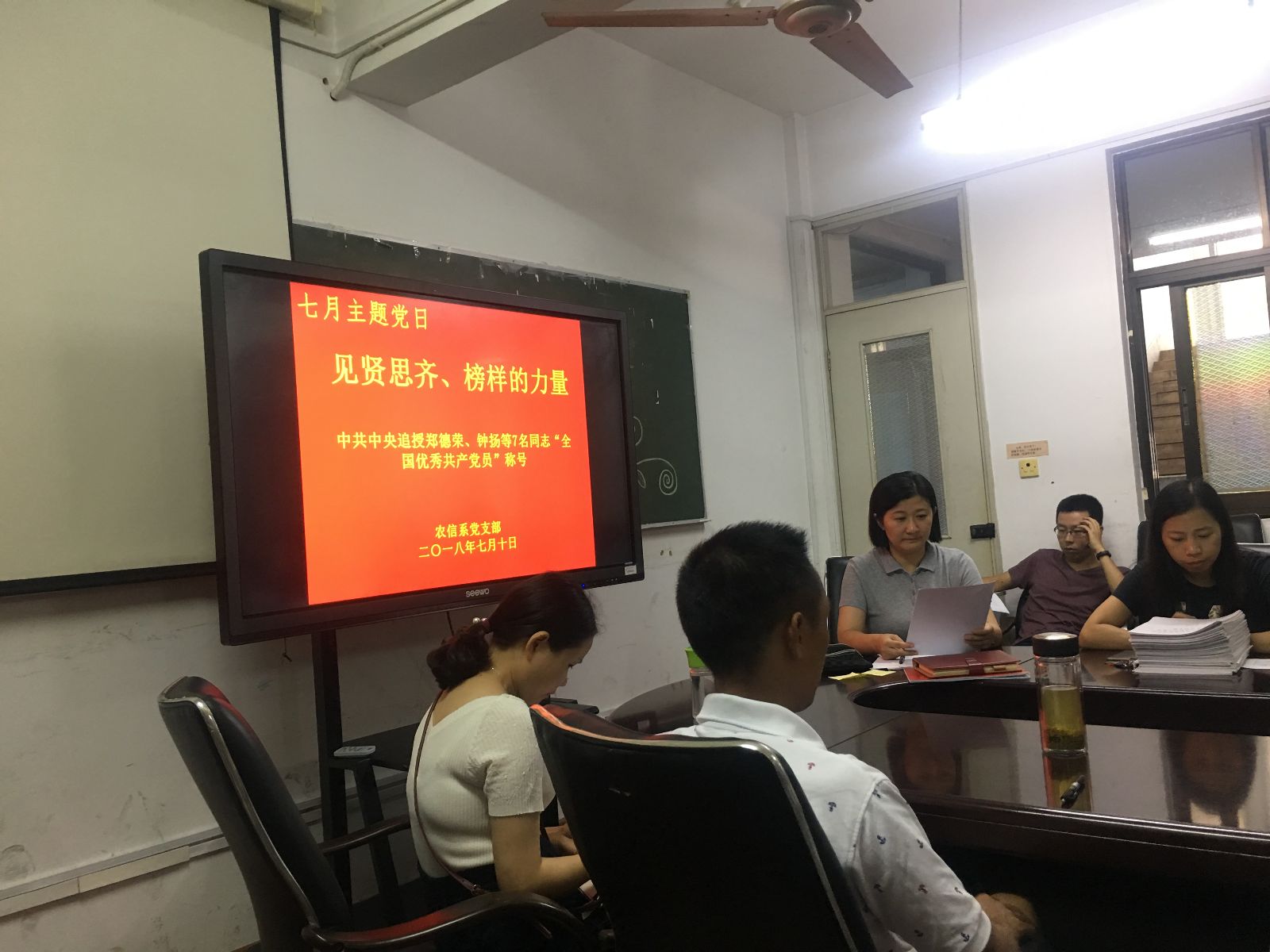 2018年7月10日上午,农信系党支部在农信楼201会议室开展主题党日活动,支部全体党员参加。