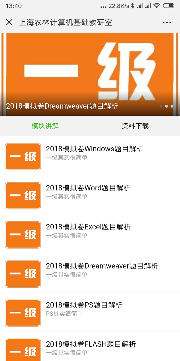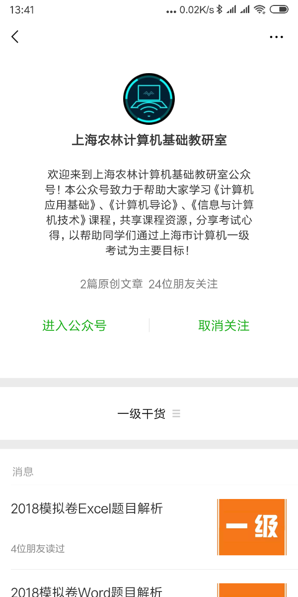 为了更好的服务学生,指导考生复习,教研室在“学习通”APP上开发了《计算机应用基础》课程进行移动教学,学生可以通过APP学习、复习、做题等,为学生解决实际问题。同时教研室开发“上海农林计算机基础教研室”公众号,专门提供资料下载、视屏指导等服务。公众号关注方便,下载资料完整,为考生提供了很大便利。截至目前,公众号关注人数近600人。各类帖子浏览量达到2000人次。