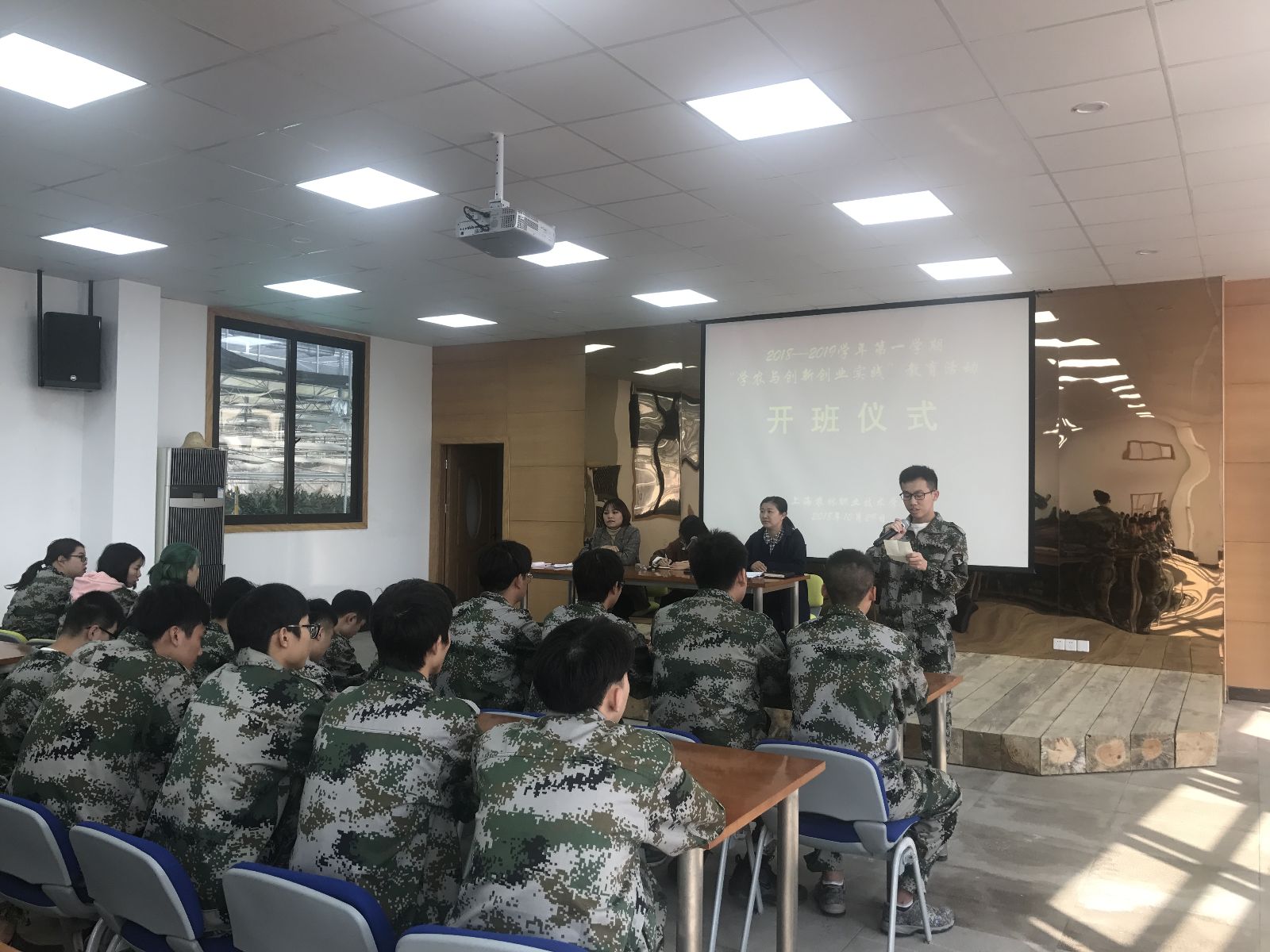 10月29日上午10点,在五厍基地生态温室进行了简短庄严的开班仪式,基地党支部书记许昊老师、学生处张艳婷老师、我系党支部书记袁少英老师、17级辅导员贾丽英老师以及17级学生共同参加了此次活动。