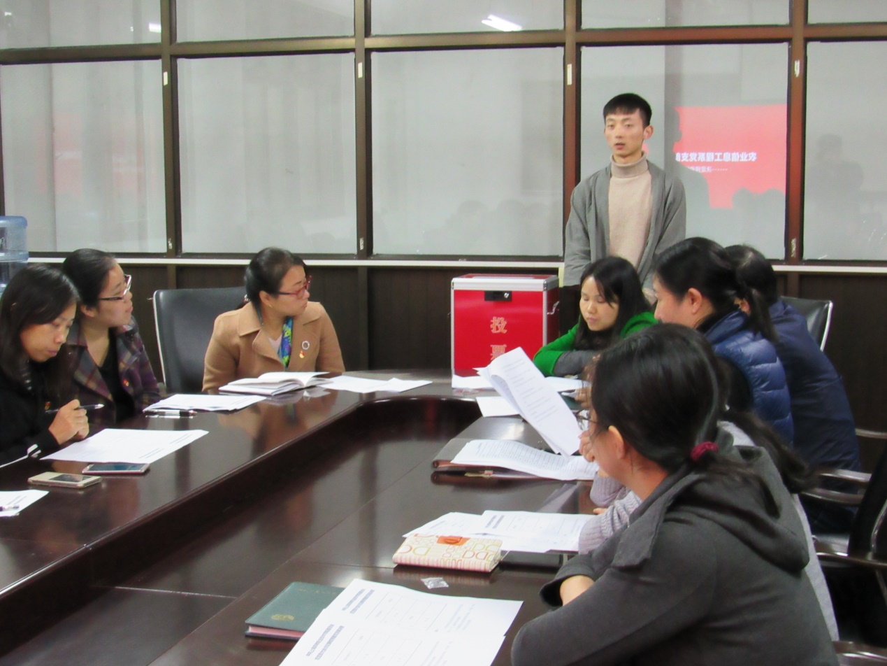 随后,全体党员也对发展对象郭昱廷的情况进行了了解,发展对象郭昱廷汇报了对党的认识、入党动机、本人履历、家庭和主要社会关系情况。入党介绍人虞亚楠老师讲到,郭昱廷同学时刻严格要求自己,在学习上努力上进,在工作中积极负责。同意其加入中国共产党。支部组织委员王璐老师介绍了对郭昱廷的政审情况,通过对其父母、姐姐以及个人进行政审,发现其无政治问题。与会党员对发展对象郭昱廷能否入党进行充分讨论之后,通过无记名投票,最终全体党员一致同意接受发展对象郭昱廷为预备党员。
