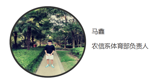 马鑫,现任农信系体育部负责人,在这一学期里我们开展并组织了一些活动,主要有学院的运动会和篮球、足球比赛,从中我们不断学习,虽然工作上还有许多不足,但在以后的工作学习中,我们会不断吸取教训,切实履行好一名学生干部的职责和义务