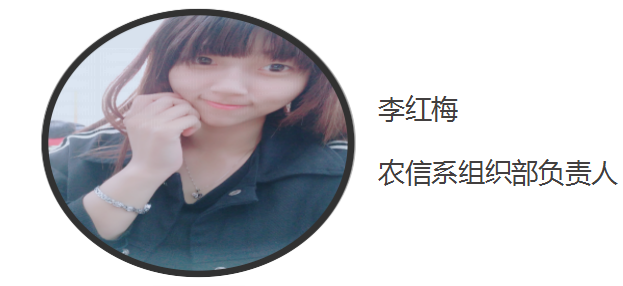 李红梅,目前担任网络172班团支书同时也是农信系组织部负责人。工作内容主要是严格做好团员的发展工作,团员证的注册和管理工作,做好团员登记、团费收缴、团员组织关系转接等工作;并完成学生会交办的其他任务;以及加强各团员的思想、政治建设。