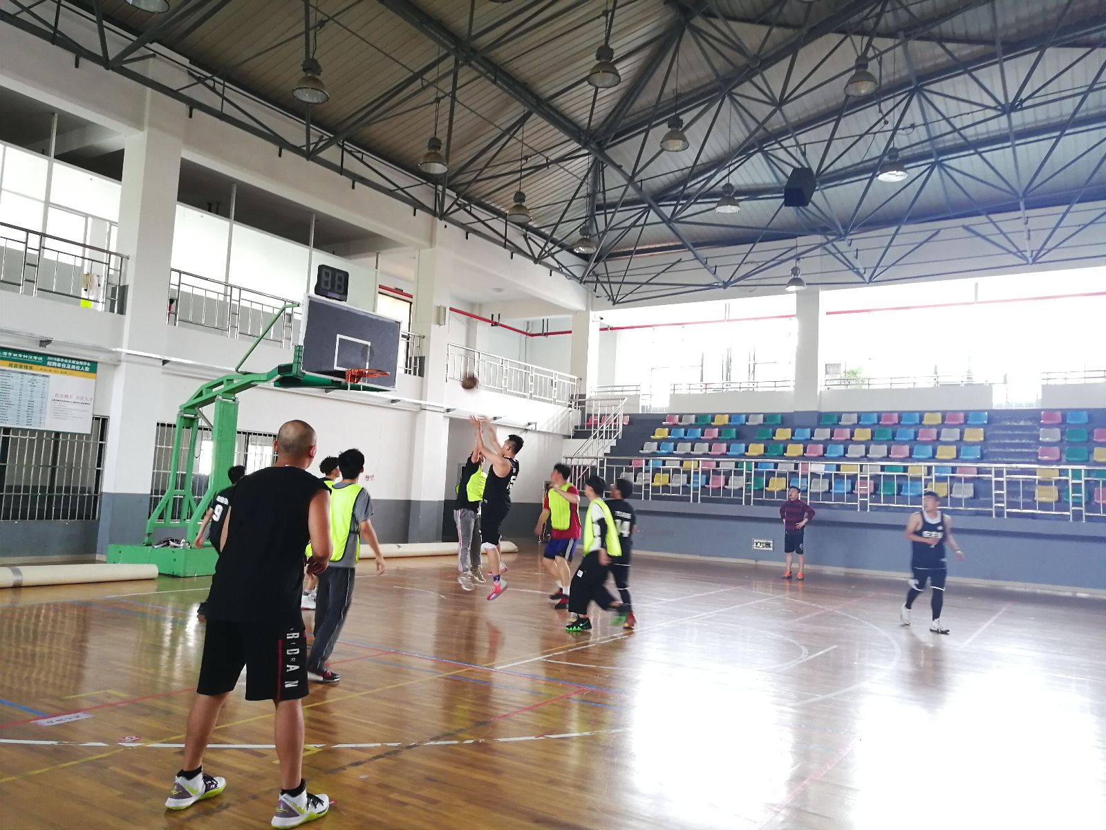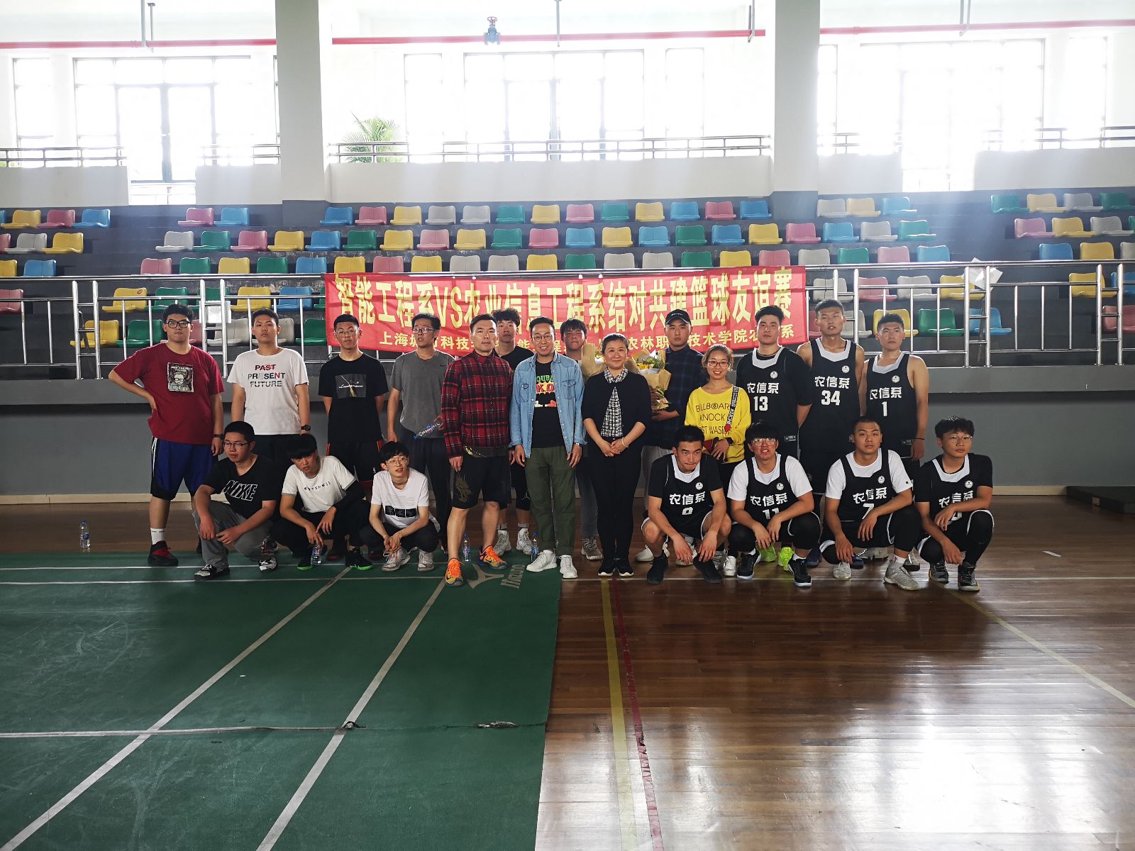2019年5月10日12点半上海城市科技学校智能工程系VS上海农林职业技术学院农业信息工程系结对共建篮球友谊赛在上海城市科技学院体育馆顺利举行。上海城市科技学校团委书记许万里老师、智能工程系副主任毕波老师、农信系党支部书记袁少英老师、团总支书记王璐老师以及参赛队员参加了本次活动。