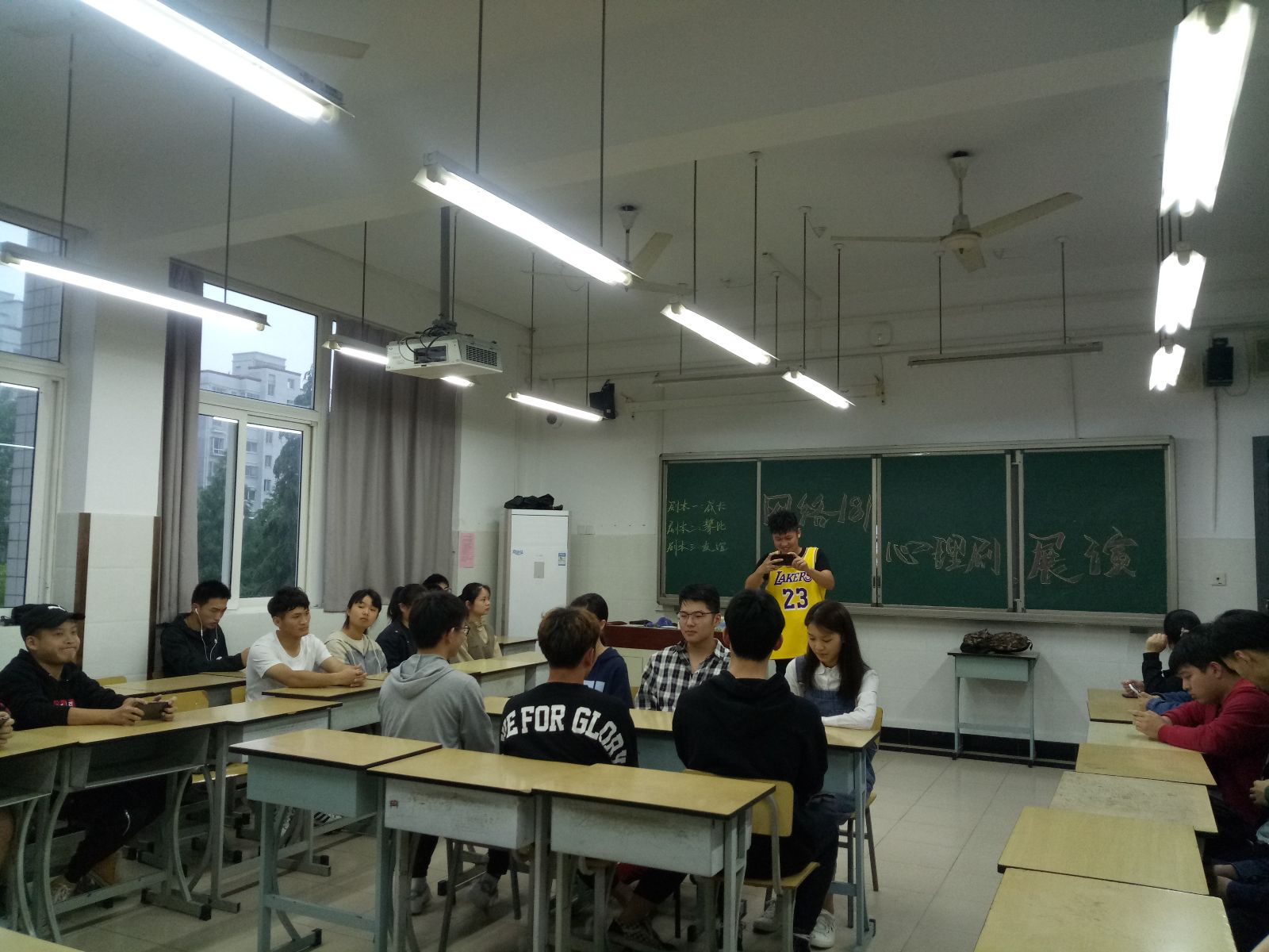 为了迎接“5.25心理活动日”的到来,进一步提高学生心理健康意识,营造和谐文明的校园氛围,2019年5月15日晚,网络181班在一教403开展了心理剧展演,张春燕老师担任评委,全班41名学生参加。