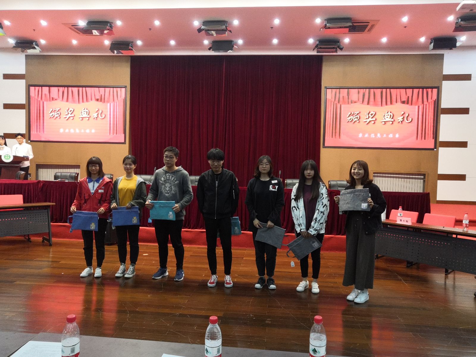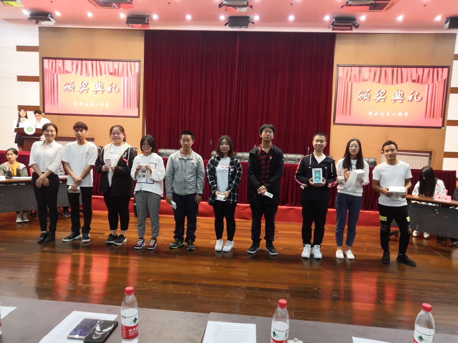 初赛以顺序答题的方式,针对大家的实际情况难度适中。活动开始之前主持人说明比赛要求和规则,参赛选手有序的坐在教室里。经过紧张的初赛,有6组同学成功闯入决赛。决赛以抢答积分方式积分,每组抢答机会只有4次。比赛中刚开始第三组连抢两道分值30分的题目并回答正确,获得在场一致掌声。第十一组也不甘示弱抢取了两道30分题,两队不相上下,打的火热,进入白热化状态时,第十一组抢答犯规扣了10分,机会再一次被第三组抢到又成功拿下30分。台下观众一片呼喊呐喊。其余4组也毫不放弃,坚持在比赛中,抢不过第三组但精神可嘉,也不能否认他们的实力。在紧张的竞赛气氛中,时间飞逝,比赛已近尾声。最后第三组稳坐第一名,第四组和第十四组也是后来居上与第十一组并列第二名,其余小组第三名。随后院系领导给获奖学生进行了颁奖仪式。