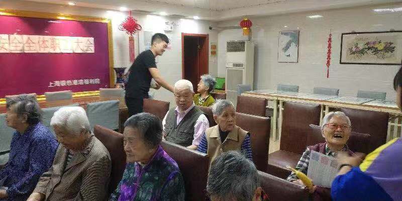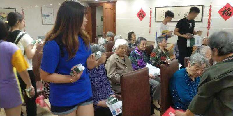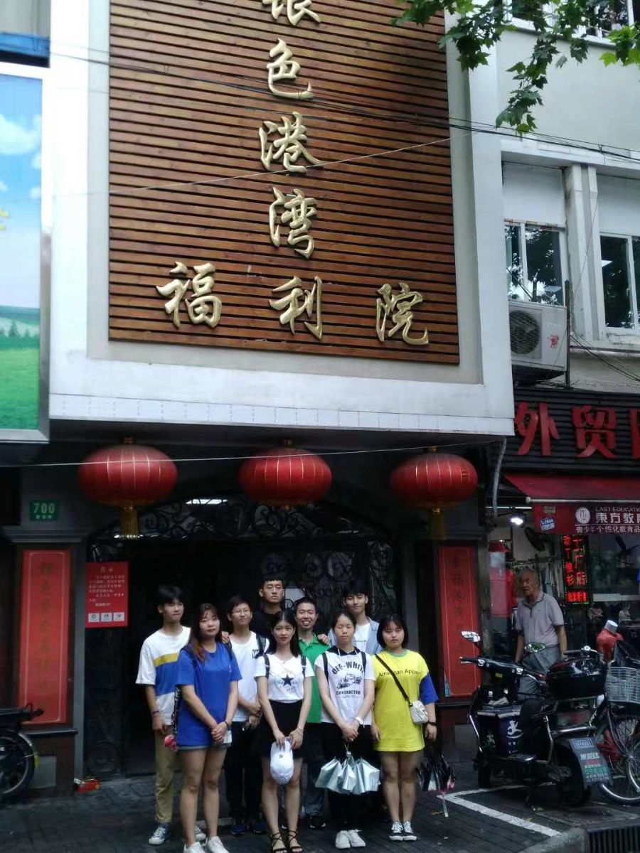 暑假前夕,我们联系到上海银色港湾福利院,并与暑期在那进行了社会实践活动。6月26日,我们一行人早早的起了身,带着提前为老人们准备的牛奶和水果来到了福利院。