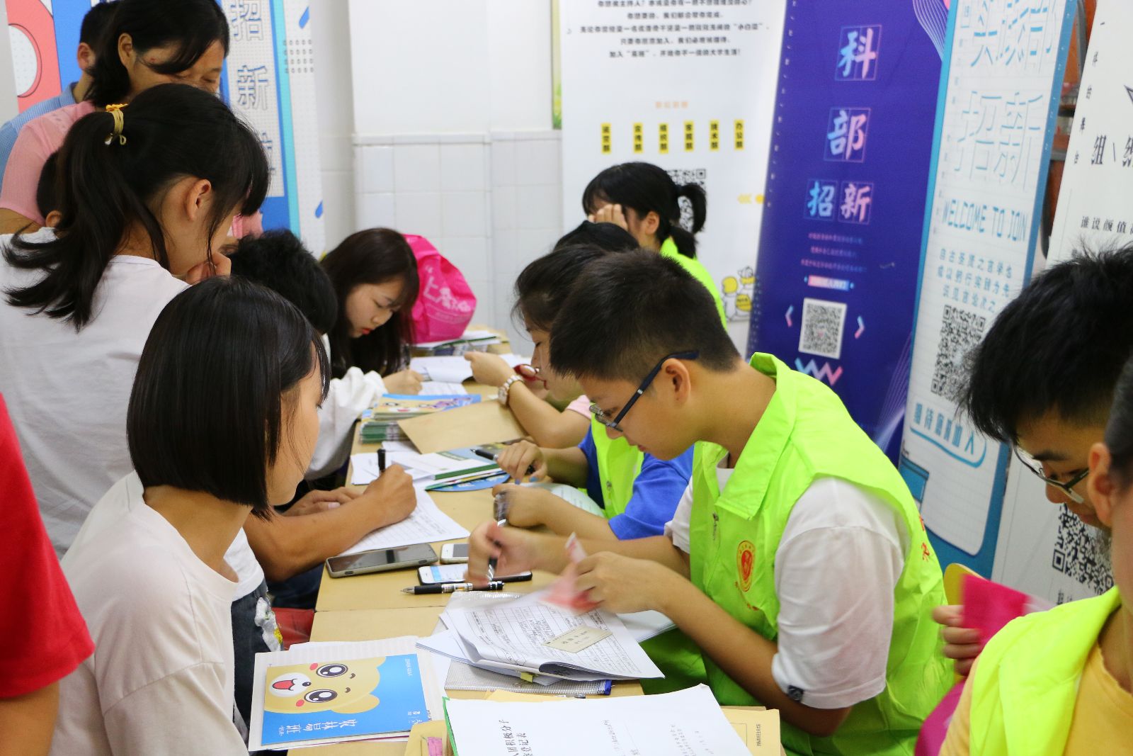 清晨六点多,校园内的迎新志愿者们便开始忙碌起来。学生志愿者们在校门口、报到大厅、校园主干道等处设立迎新服务站点。接站的大巴车不停歇地在接驳点来回运转,将新同学们送往学校。