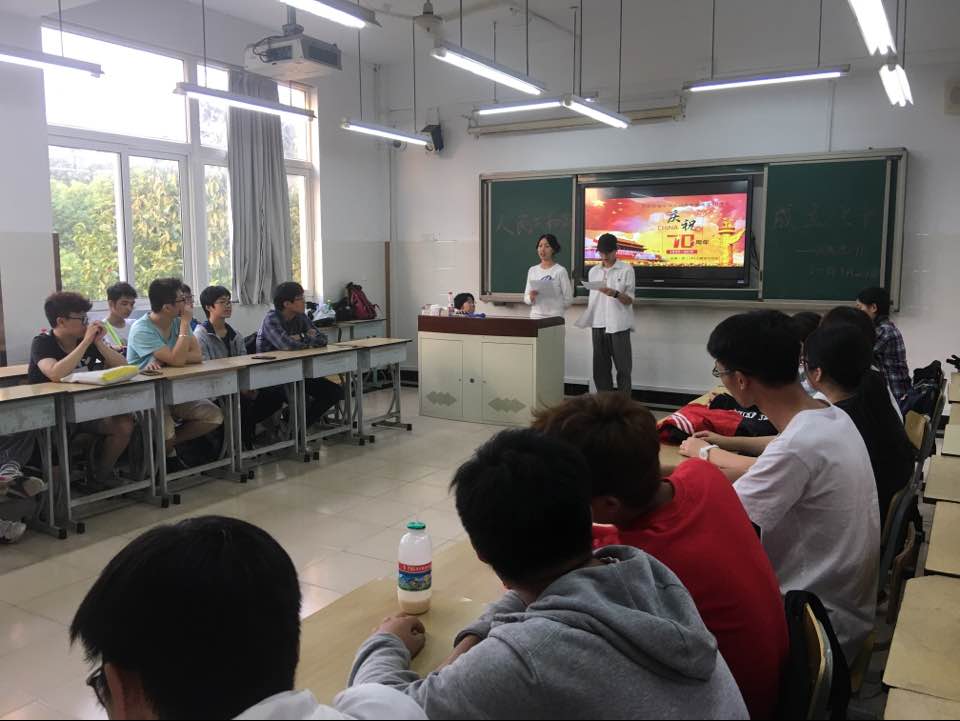 为隆重庆祝中华人民共和国成立70周年,大力唱响礼赞新中国、奋进新时代的青春主旋律,激励和引导广大青年大力弘扬以爱国主义为核心的伟大民族精神。上海农林职业技术学院农信系设施(贯)191班全体同学在团支部组织下,于2019年9月24日晚17:00,在一教209教室开展了以“庆祝中华人民共和国成立70周年”为主题的团日活动。