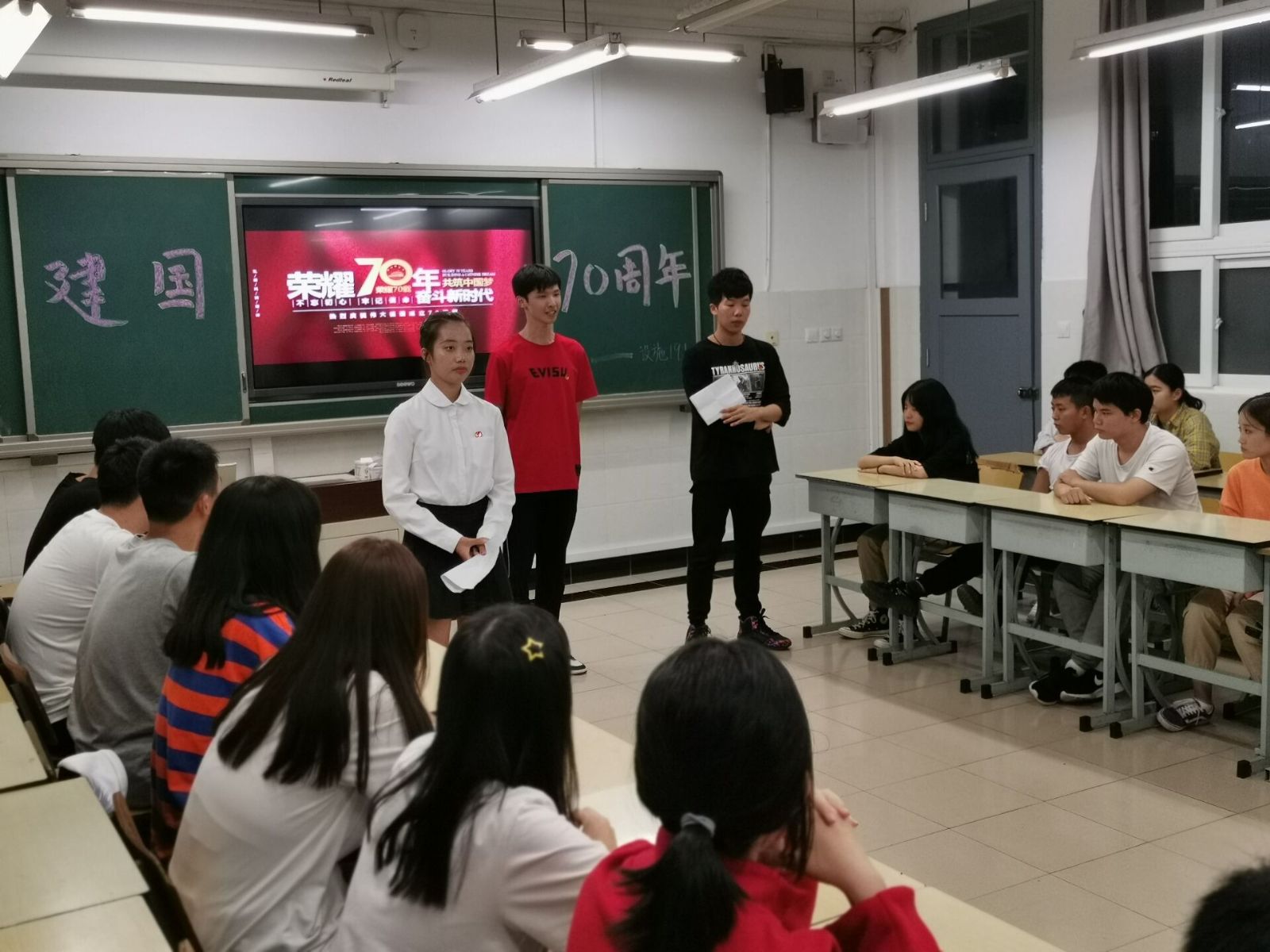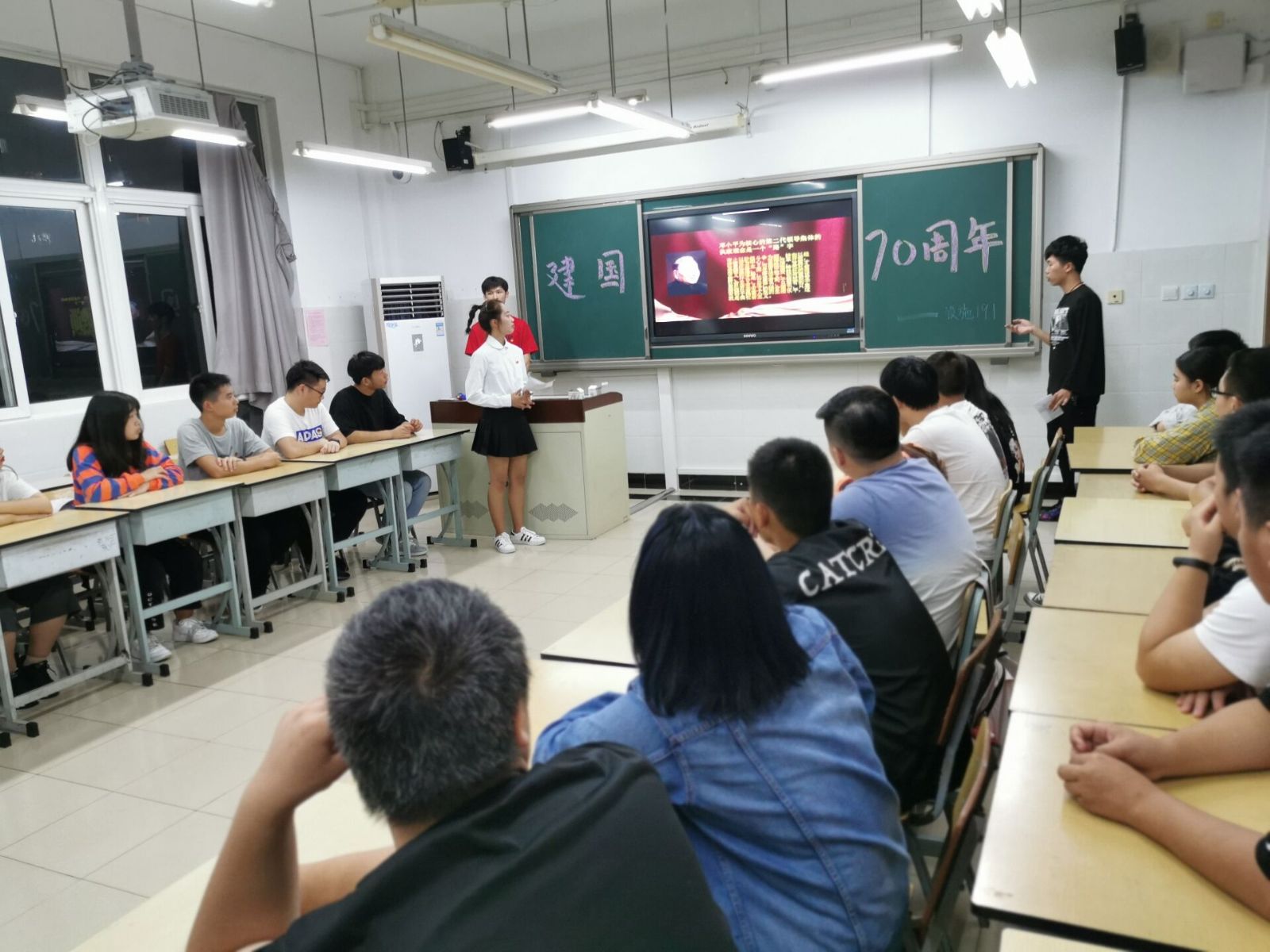 2019年9月25日设施191班开展“庆祝中华人民共和国成立70周年”主题团日活动,活动由团支书方一正策划并展开,地点为一教405。