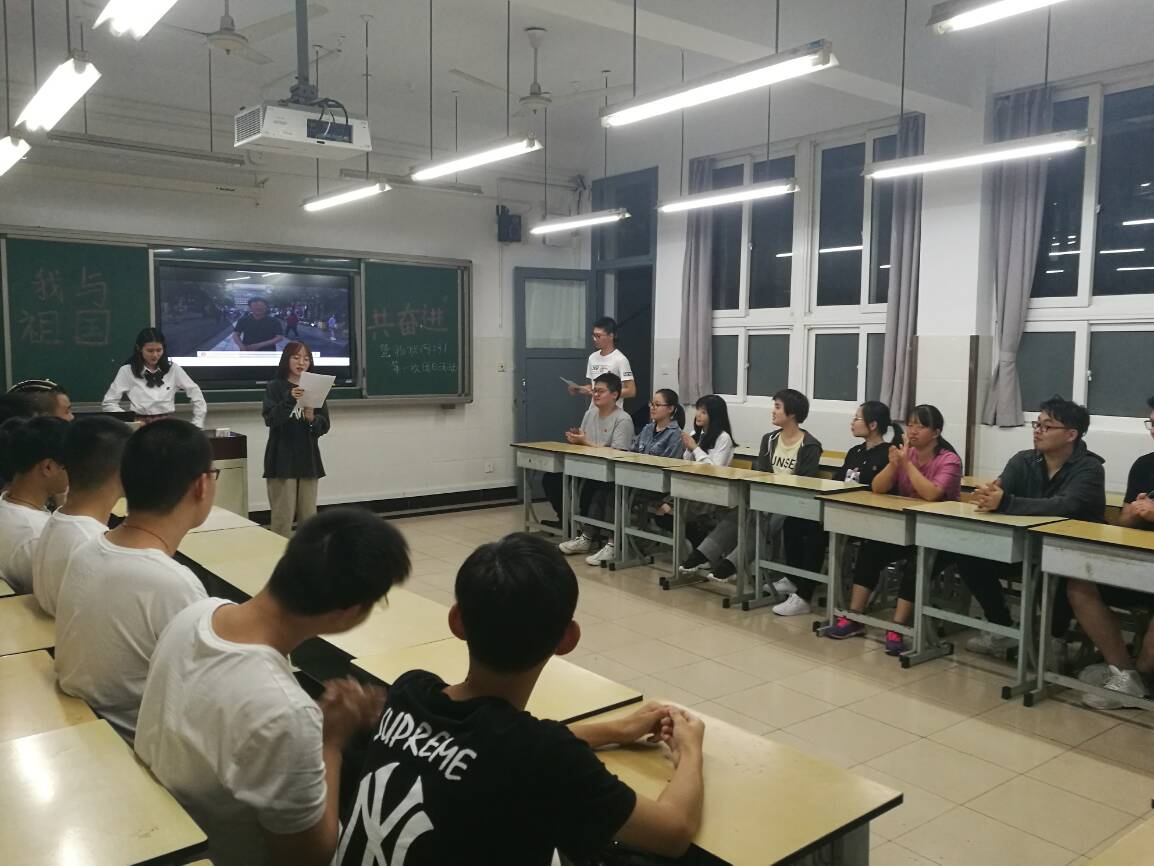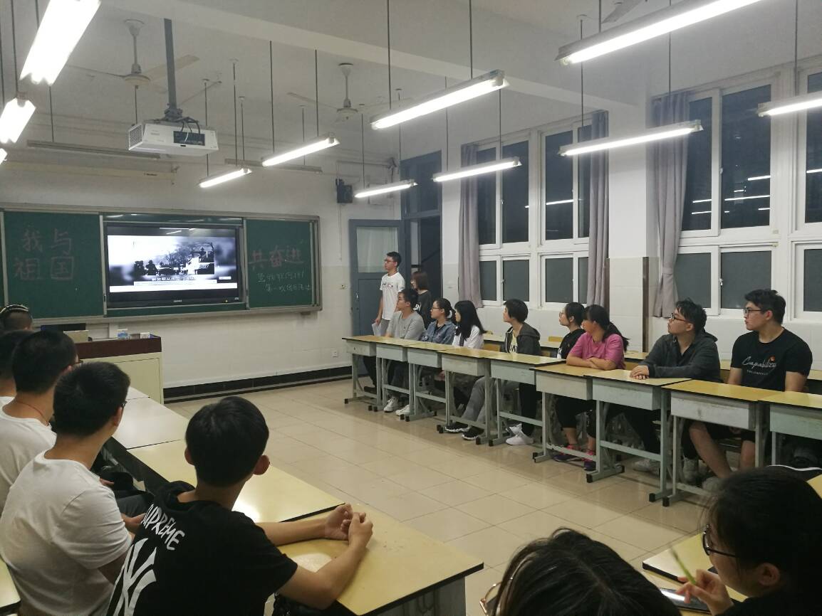 为庆祝中华人民共和国成立70周年,大力唱响礼赞新中国、奋进新时代的青春主旋律,激励和引导广大团员青年大力弘扬以爱国主义为核心的伟大民族精神,进一步坚定“四个自信”,勇担历史重任,集中展现当代青年与祖国同呼吸、与时代共奋进的爱国主义情怀和昂扬精神风貌。为此,我班在一教406教室开展《我与祖国共奋进》为主题的团日活动。