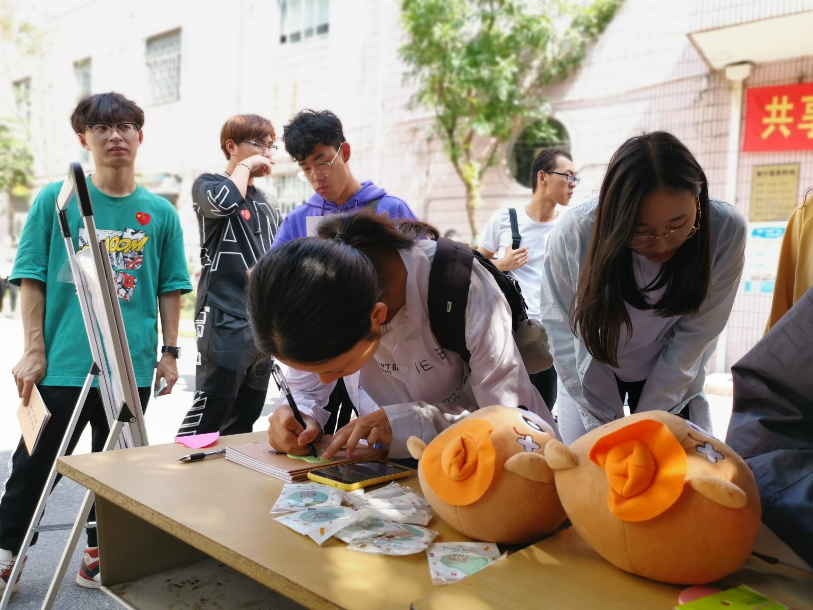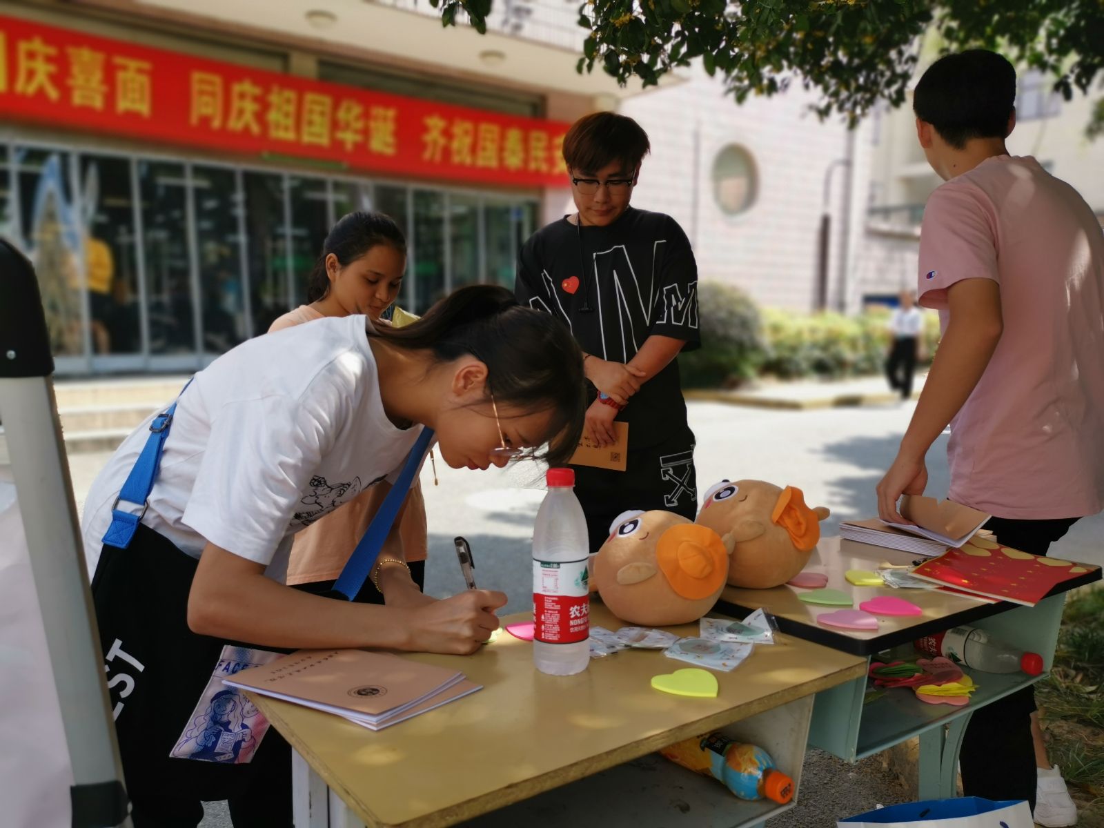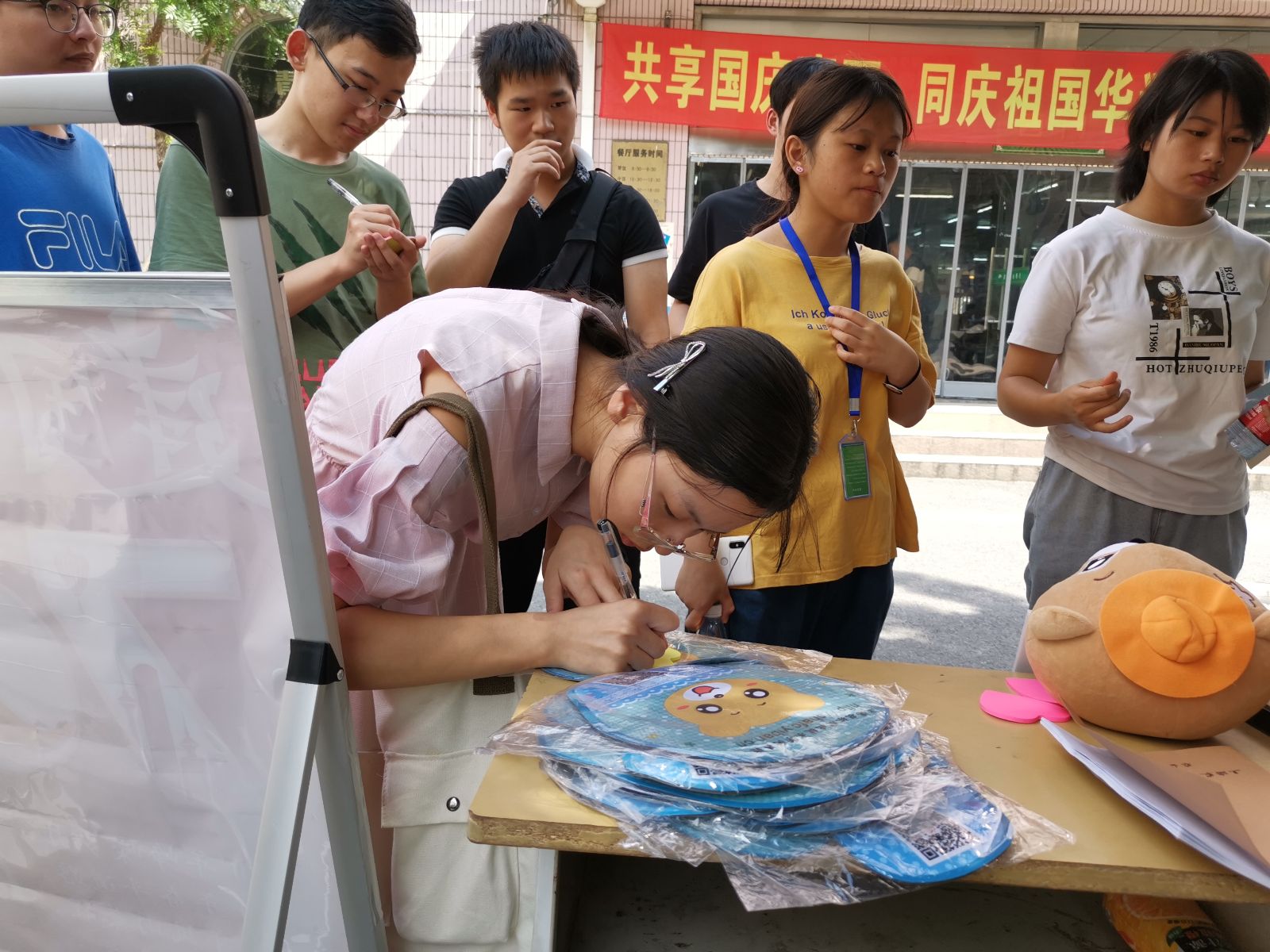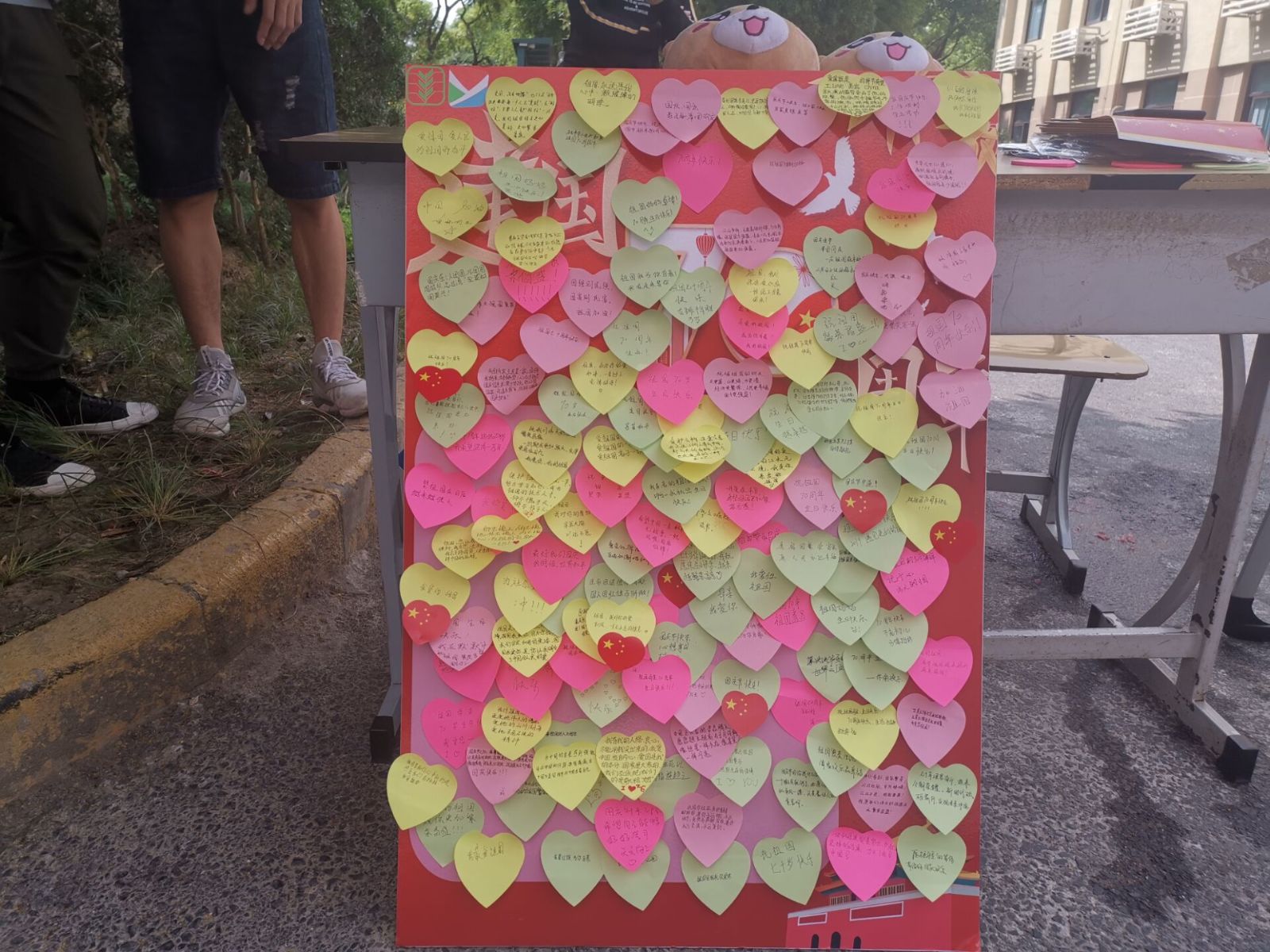 29日中午在第一食堂门口,我系学生纷纷驻足,留下了对祖国的美好祝福。