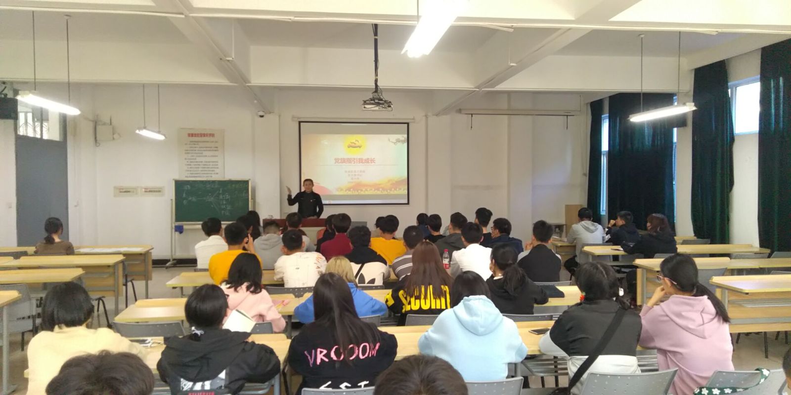 为深入学习习近平总书记在“不忘初心、牢记使命”主题教育工作会议上的重要讲话精神和《中共中央关于在全党开展“不忘初心、牢记使命”主题教育的意见》,2019年11月8日下午14:45分,我系党支部书记袁少英老师给递交入党申请书的学生上了“党旗指引我成长”主题党课。
