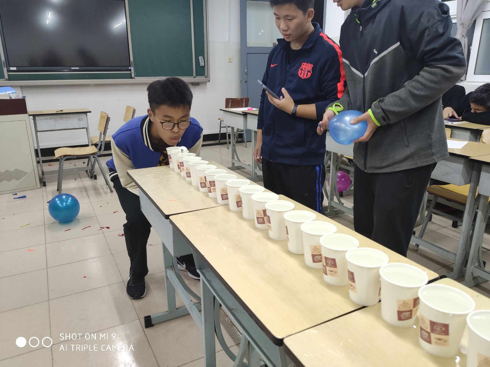 接着陆续开展了 “箩卜蹲”“青蛙王子吹乒乓球”、“你画我猜”等游戏,每位同学都积极参与,同学们热烈的掌声和欢乐的笑声顿时充满了整个教室。