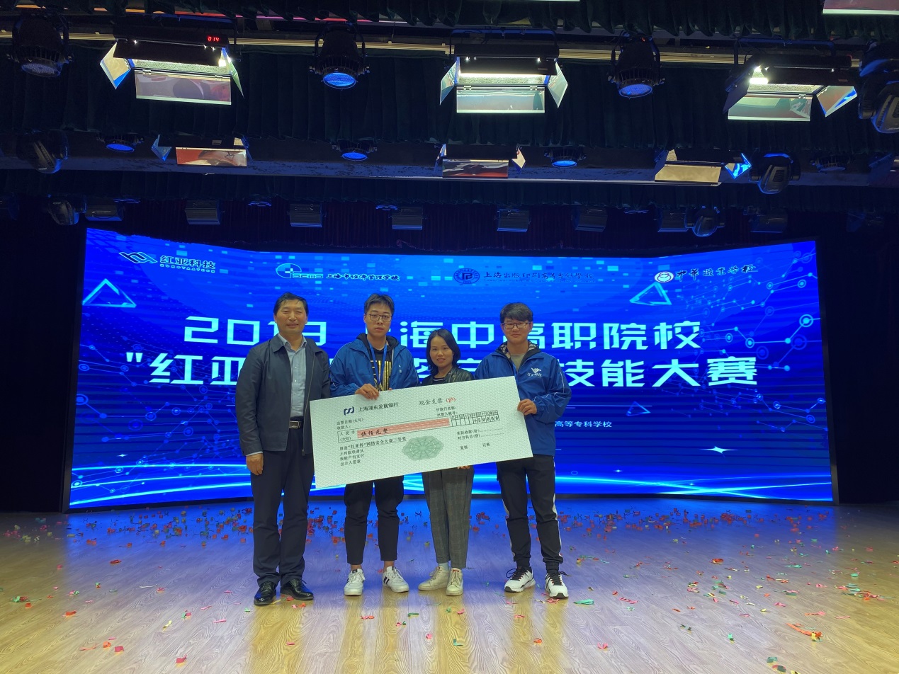 11月15日,由上海市教委主办的上海中高职院校“红亚杯”网络安全技能大赛在上海市经济管理学校顺利举行。此次大赛吸引了来自上海第二工业大学、上海电子信息技术学院、上海中侨职业技术学院等中高职学院20支队伍共计40名参赛选手参加。我院农信系网络181班的张轶、孙其清两位学生作为参赛选手,胡鹏昱、杨文明两位老师作为指导教师参与了此次竞赛。经过2个小时的激烈角逐,我院参赛队获得了高职组三等奖的好成绩。农信系主任孙修东也莅临现场进行观赛指导。