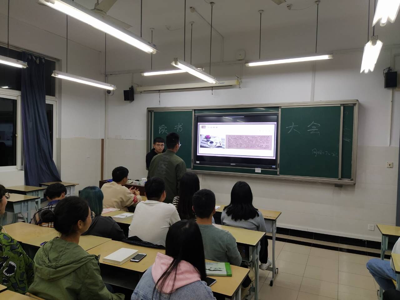 为激发学生读书热情,打造书香校园,营造良好读书氛围,2019年9月中旬至10月底每周一晚上,农信系网络192班的学生积极开展“书香悦读”读书分享会。读书分享会宗旨是:在学校营造热爱读书、支持读书、尊重读书、读书光荣的良好氛围,激发读书热情,感受读书快乐。本次读书分享会共分为三期,每期读书会,有四个小组参加,在读书会前期,书籍由小组成员共同讨论定出书目,在读书会上按小组分享本组所读书目。