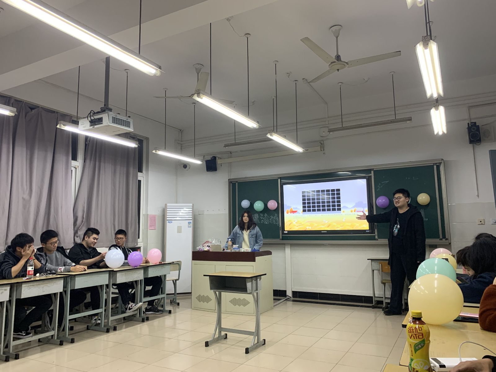 活动开始先从几个心理测试图开始,心理委员向班级同学普及基础心理知识,然后从自身生活出发,谈起进入大学生活后人际关系的变化;接下来向大家表演了名为“读心术”的扑克牌游戏,并讲明了其中的科学原理,让大家对心理学有一个基本的认识,消除对心理健康的一些偏见和错误的认知,拓展大家的知识水平;接下来的传统挤气球项目,通过两人一组一起用身体挤破气球的形式,从身体接触入手,从而拉近同学们心理上的距离;接着的“你画我猜”的环节,把本次活动推向高潮,台上的同学展现画功,台下的观众出谋划策,全班其乐融融,看到了名为“团结”、“温馨”的光芒!