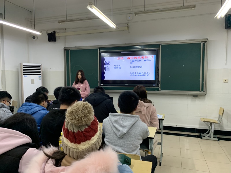 在“诚信迎考,从我做起”的主题班会中,班长朱嘉雯同学用各种鲜活的案例讲述了诚信在生活和工作中的重要性,以及失去诚信带来的严重后果,动员大家从小事做起,时时刻刻都要用诚信的态度对待每一件事情。同学们纷纷表示通过此次班会更进一步认识到诚信的重要性,并主动签下诚信承诺书,承诺以本次期末考试为契机,做到诚信考试。