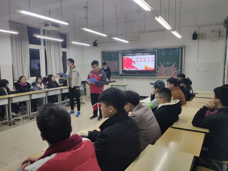 2019年12月22日软件192班开展了“树青春之风、昭爱国之心”主题团日活动,活动由团支书郑世豪策划并展开,地点为一教412.