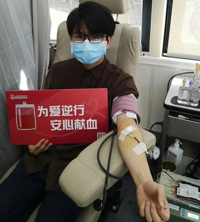 2月22日,吴锟健同学来到东方明珠献血屋,在医务人员的指引下,依次完成填表、体检、抽血等程序,200毫升的血两三分钟就献好了。这是他人生中第二次献血,第一次献血还是在18年的时候。疫情当前,吴锟健同学表示:“现在有很多人因为疫情遭受着人生的考验,有不幸感染新型冠状病毒感染肺炎的患者,有因为医疗压力增加不能及时得到输血的其他患者,还有坚持在一线的医护人员们,而我们已经足够幸运能够平安在家。我能做的不多,只希望献的血能够稍微让那些患者、医护人员的压力少一点点也足够了,让我们的爱传递下去,众志成城,共克时艰。”