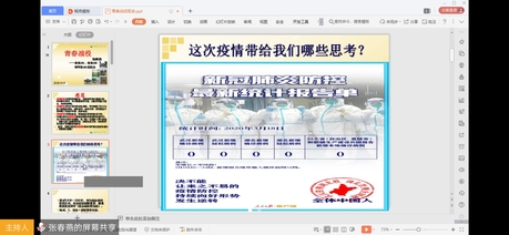 18级辅导员张春燕以“感恩”开始本次班会,感谢疫情防控期间同学们及学生家长的积极配合、感谢寒假加班的学院领导和老师、感谢所有拼死守护我们的逆行者们。同时引出班会主题:这次疫情带给我们哪些思考?同学们纷纷表示感谢祖国的强大,以身为中国人而感到骄傲。