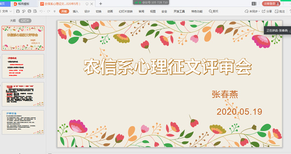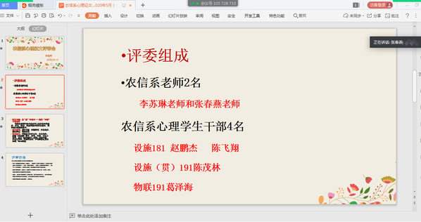 2020年5月19日晚18点—21点,农信系通过云端腾讯会议,对15名学生作品进行终审,邀请李苏琳老师、张春燕老师和4位优秀心理学生干部担任评审。经过民主盲审,设施(贯)191班刘淋《“疫”境中的成长》获得一等奖,设施(贯)191陆哲琰《战“疫”中成长》和设施(贯)191刘思贤《明天会更好》获得二等奖,物联网191 班王淳《抗逆成长,感恩生活》 、软件191班熊国庆《疫情不散,行动不止》和设施181赵鹏杰《“疫”站到底》获得三等奖。